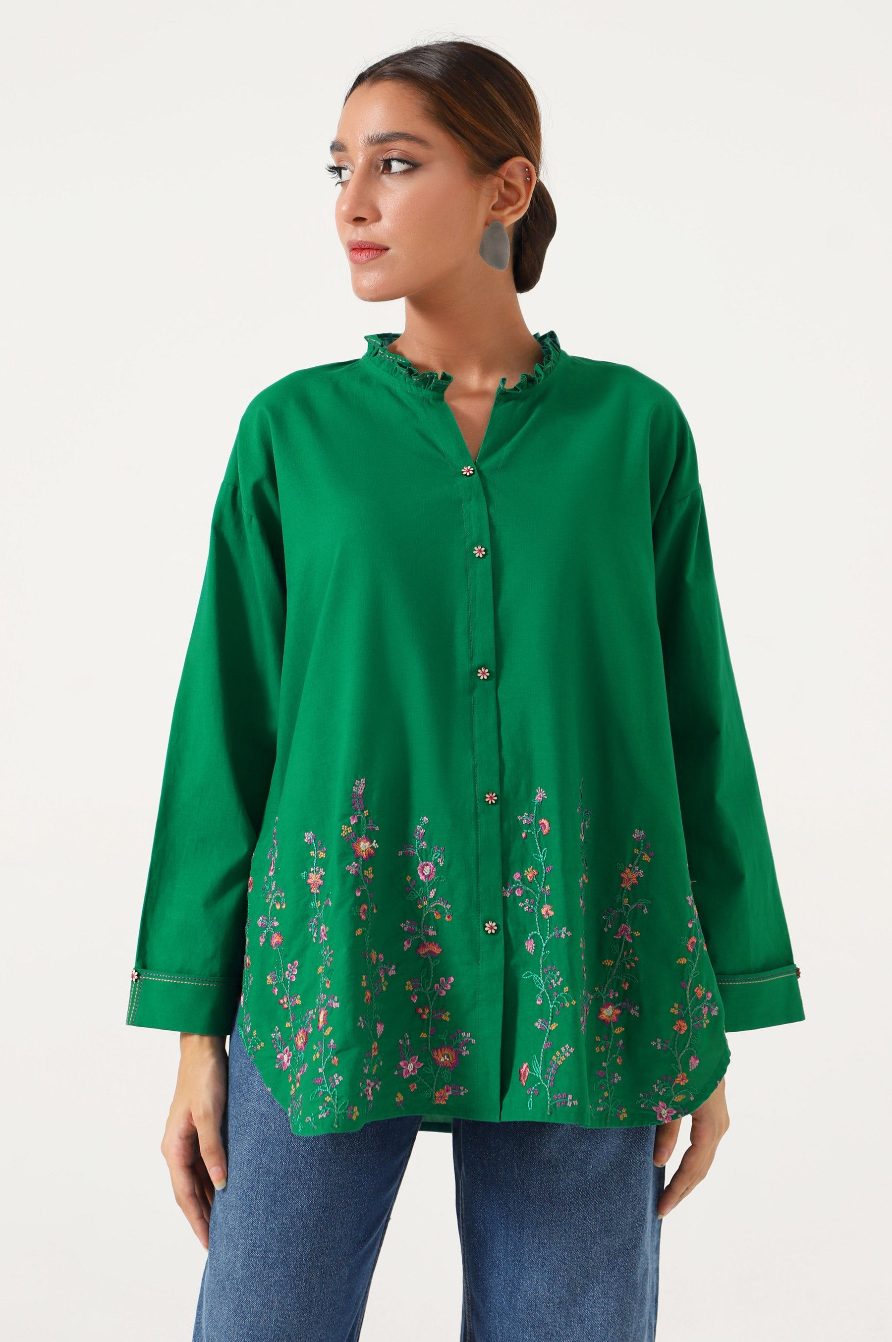 Adorn yourself in this cute and playful floral embroidered top accentuated with pop color of magenta and orange. It is a perfect essential for the upcoming season.