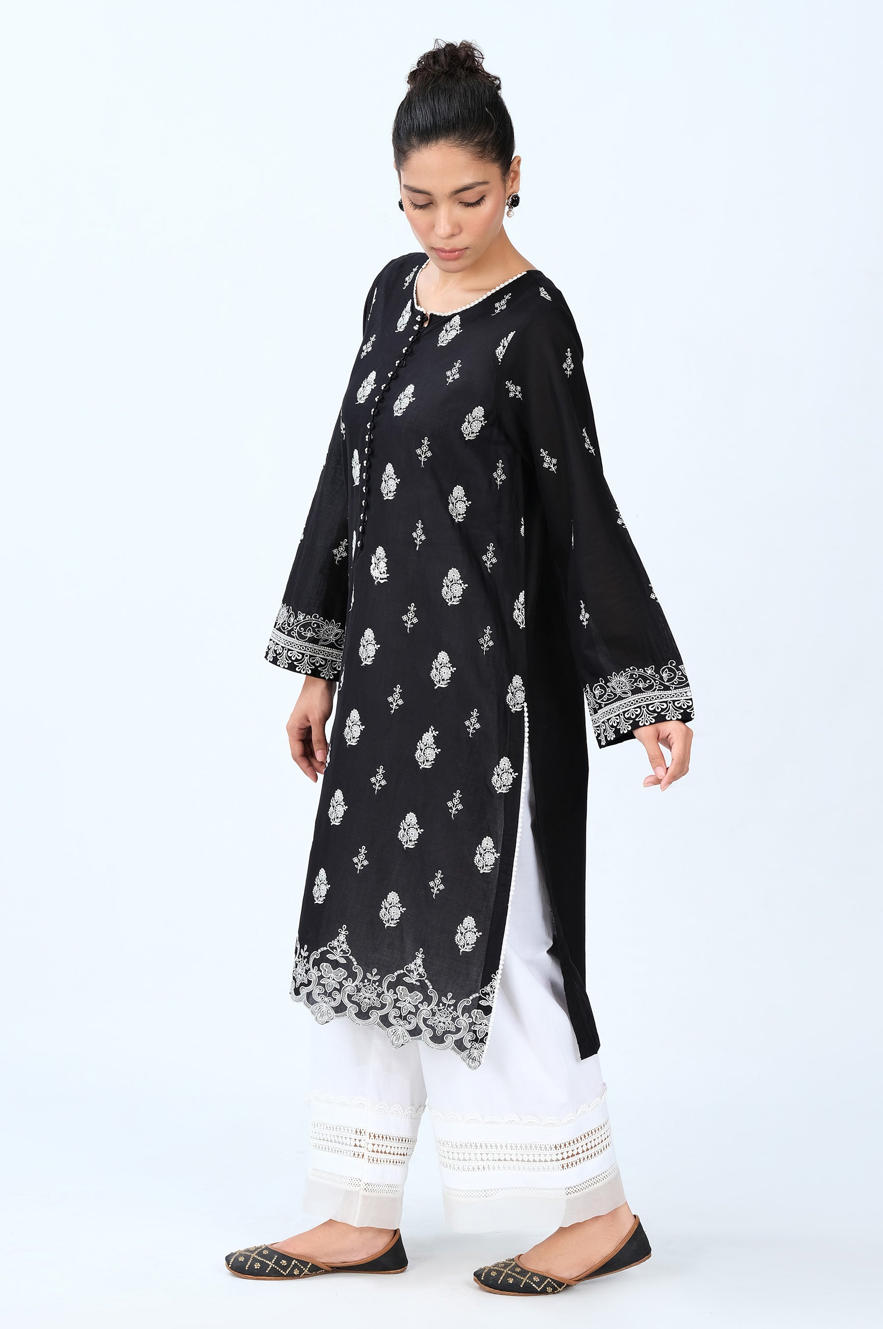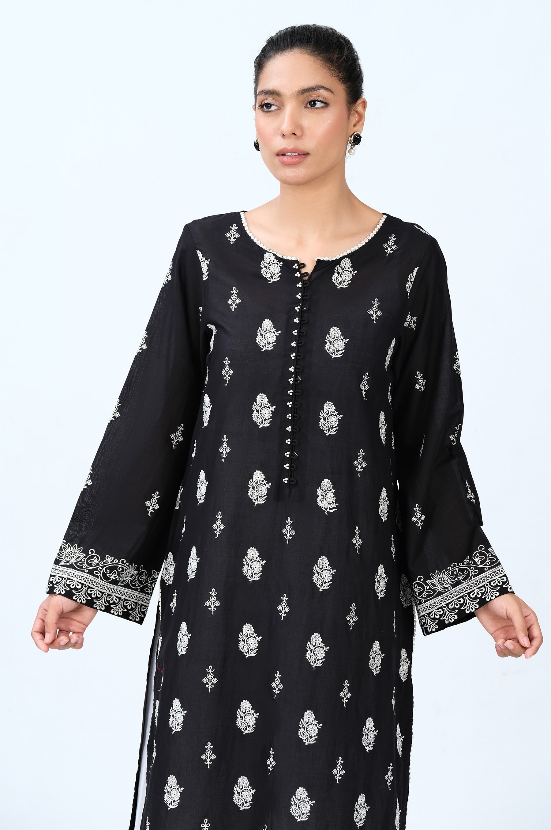 Dyed Lawn Chikankari Shirt, Laces & Pearls for Embellishment