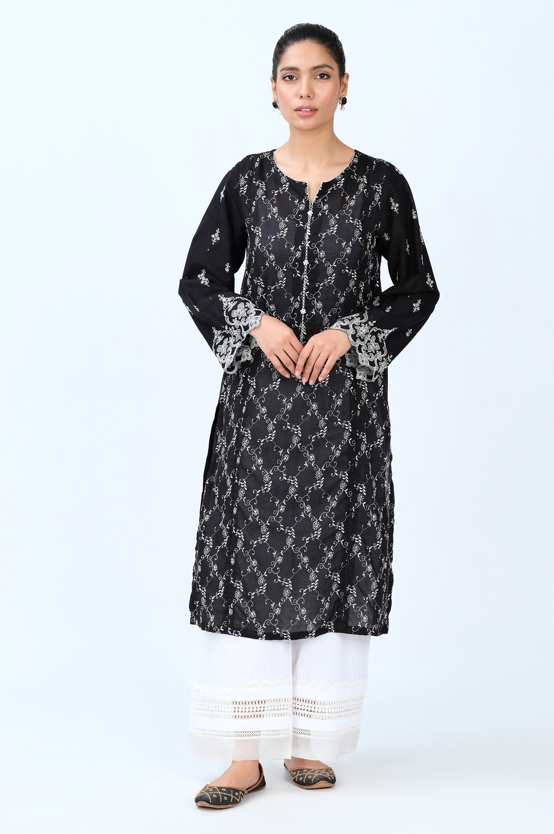 Dyed Lawn Chikankari Shirt, Pearls & Laces for Embellishment