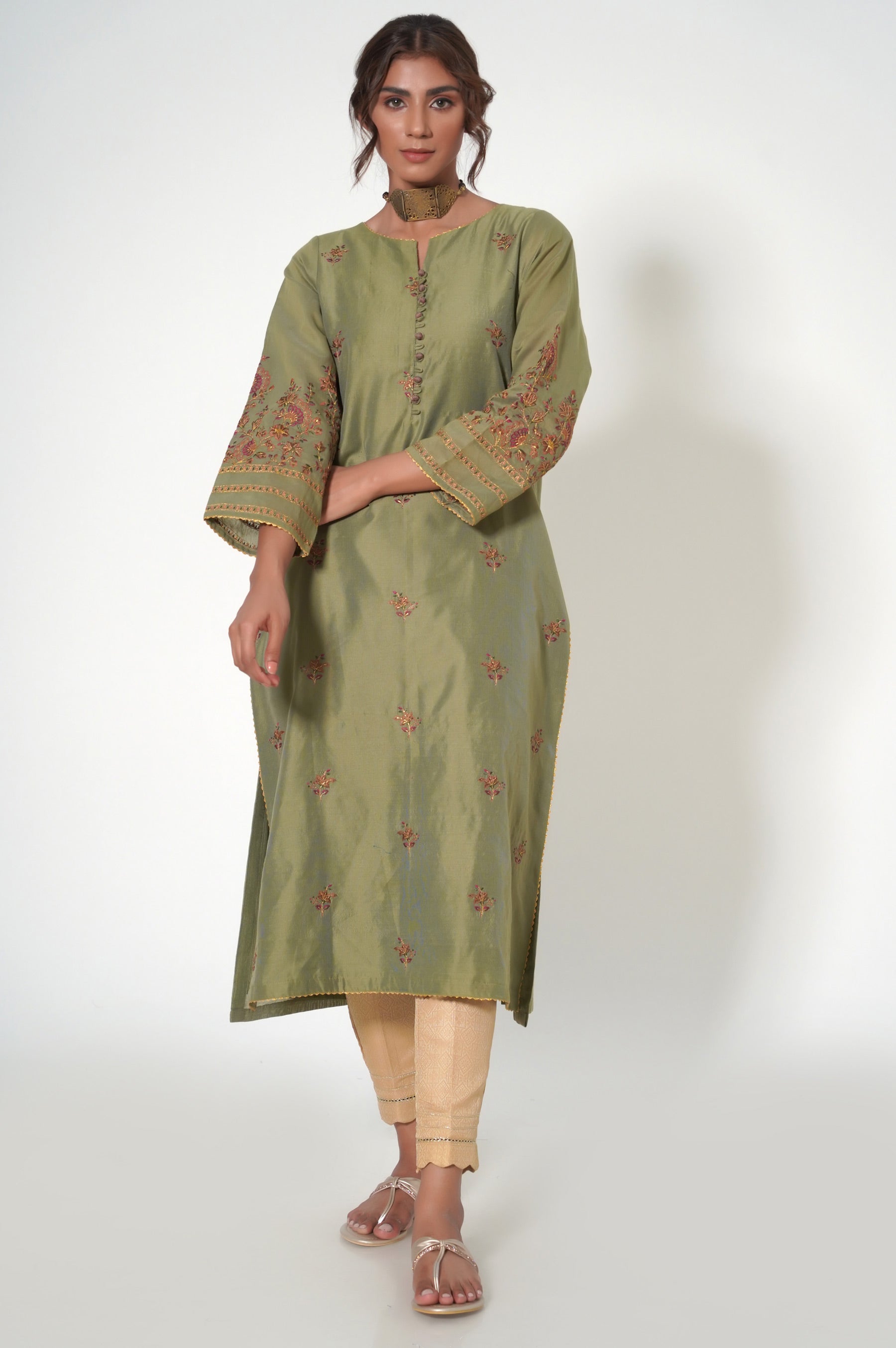 This sophisticated cotton net shirt is illustrated with oriental floral embroidery on shirt. This 1-pc shirt is the right choice for your wardrobe, it can be paired with zeen bottoms.