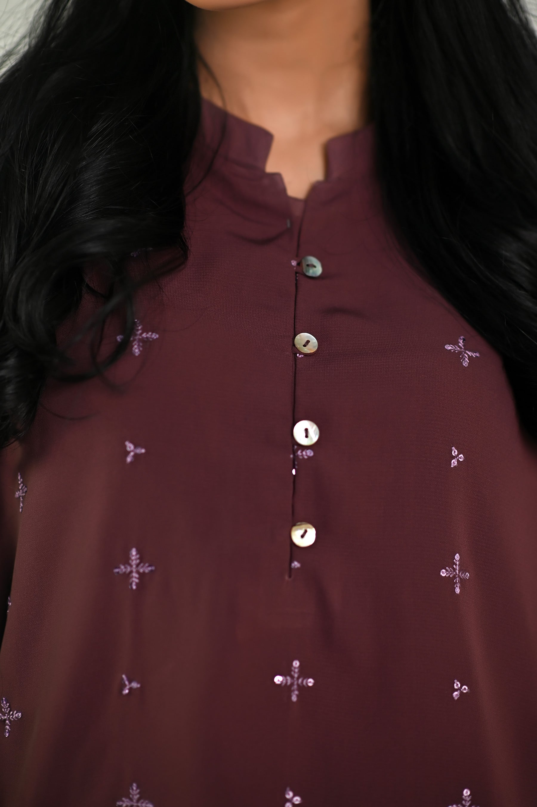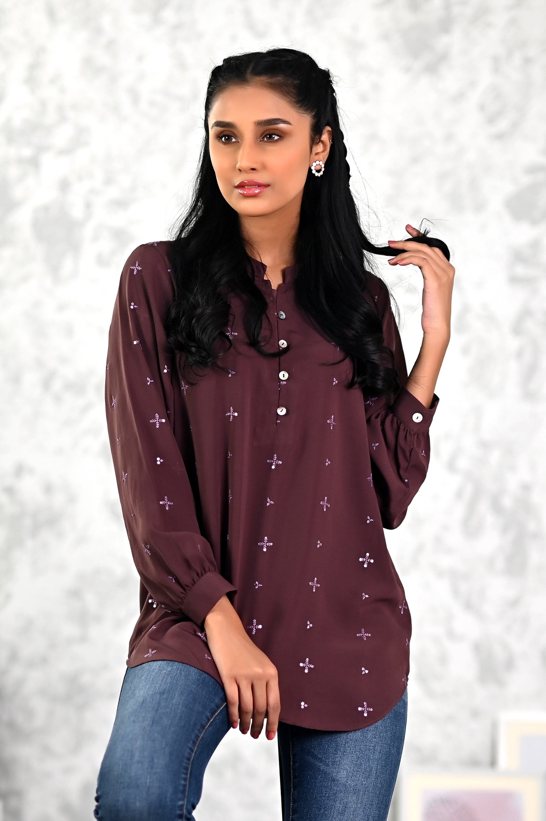 This trendy top is beautifully encrusted with delicate monotone sequins embroidery on the front and sleeve. This gorgeous crepe top is a style statement this season.