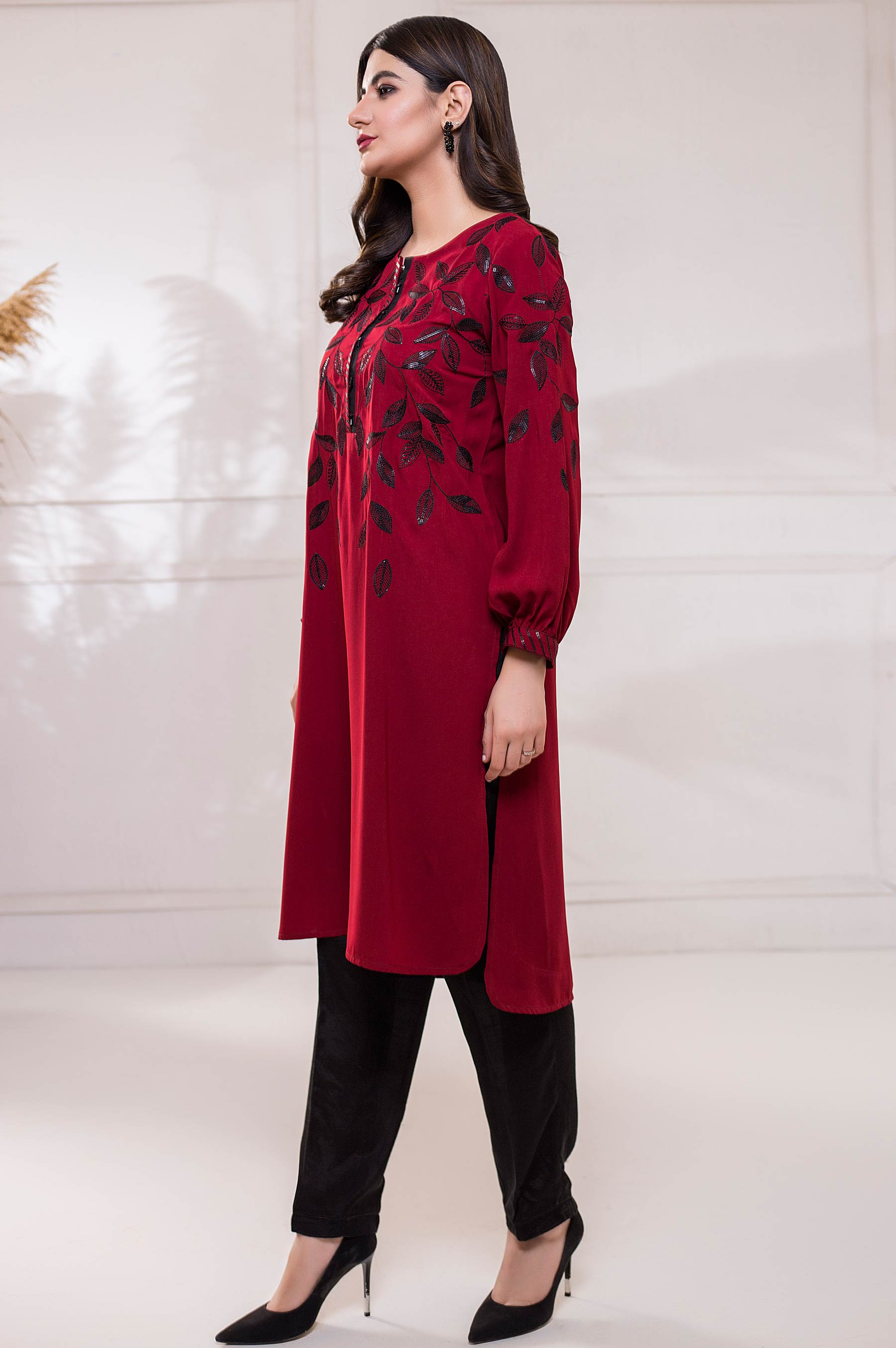 Stitched 1 Piece Crepe Embroidered Shirt