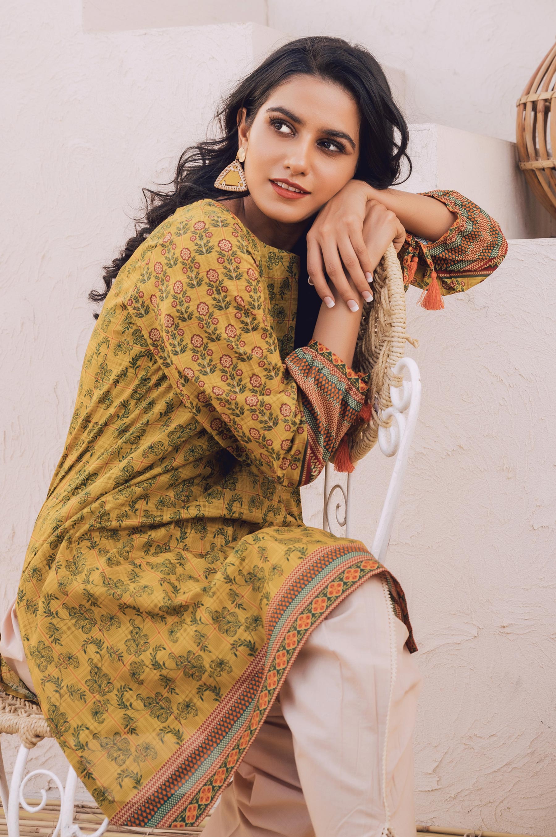 Digital Printed Doria Lawn Shirt, Beads, Sequins & Tassels for Embellishment