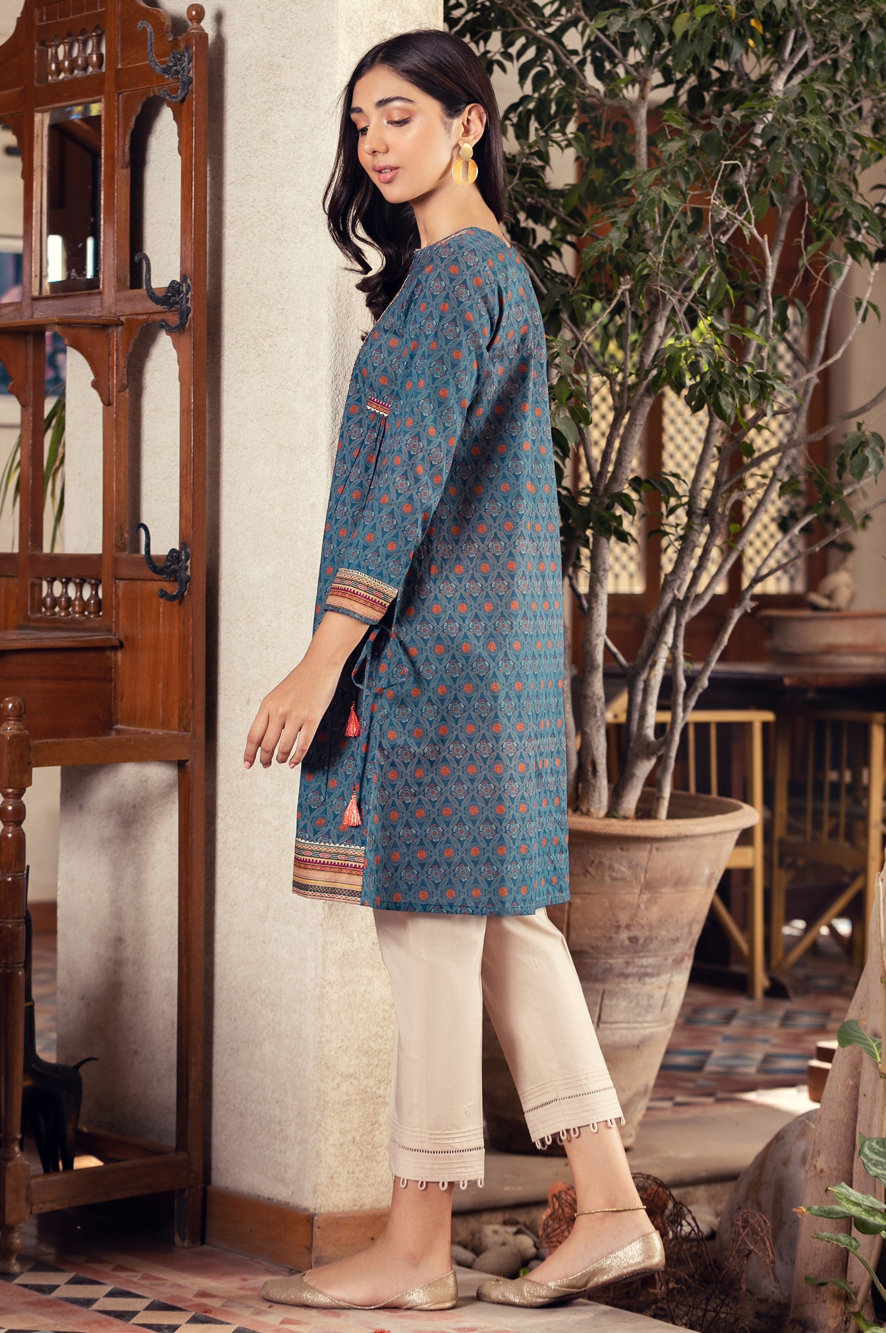 Digital Printed Doria Lawn Shirt, Beads, Tassels & Laces for Embellishment