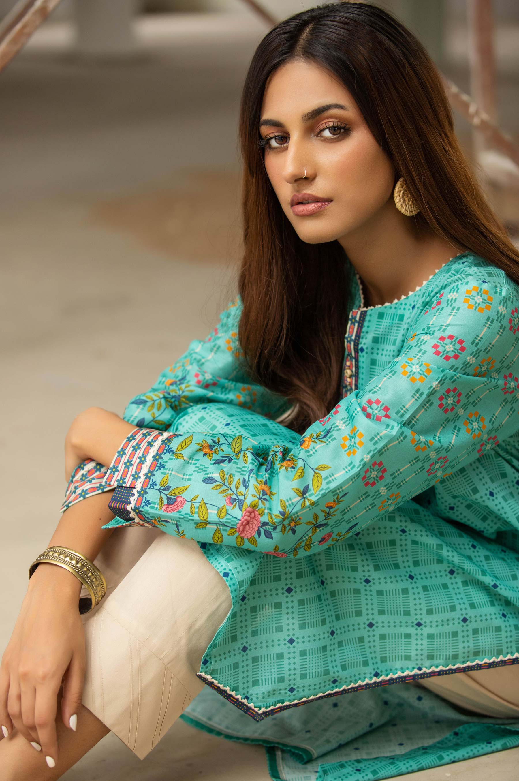 Digital Printed Doria Shirt, Beads & Lace for Embellishment.