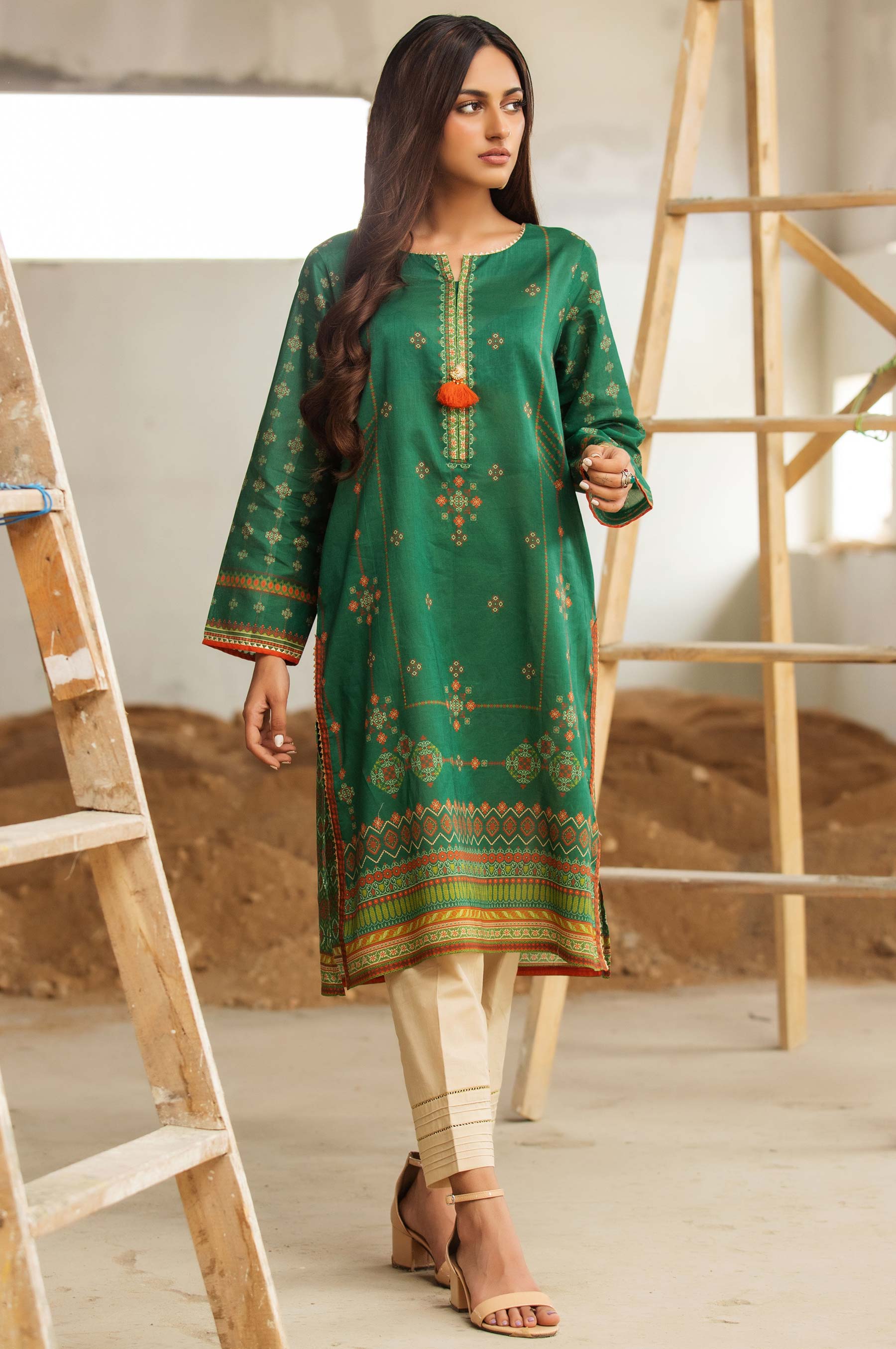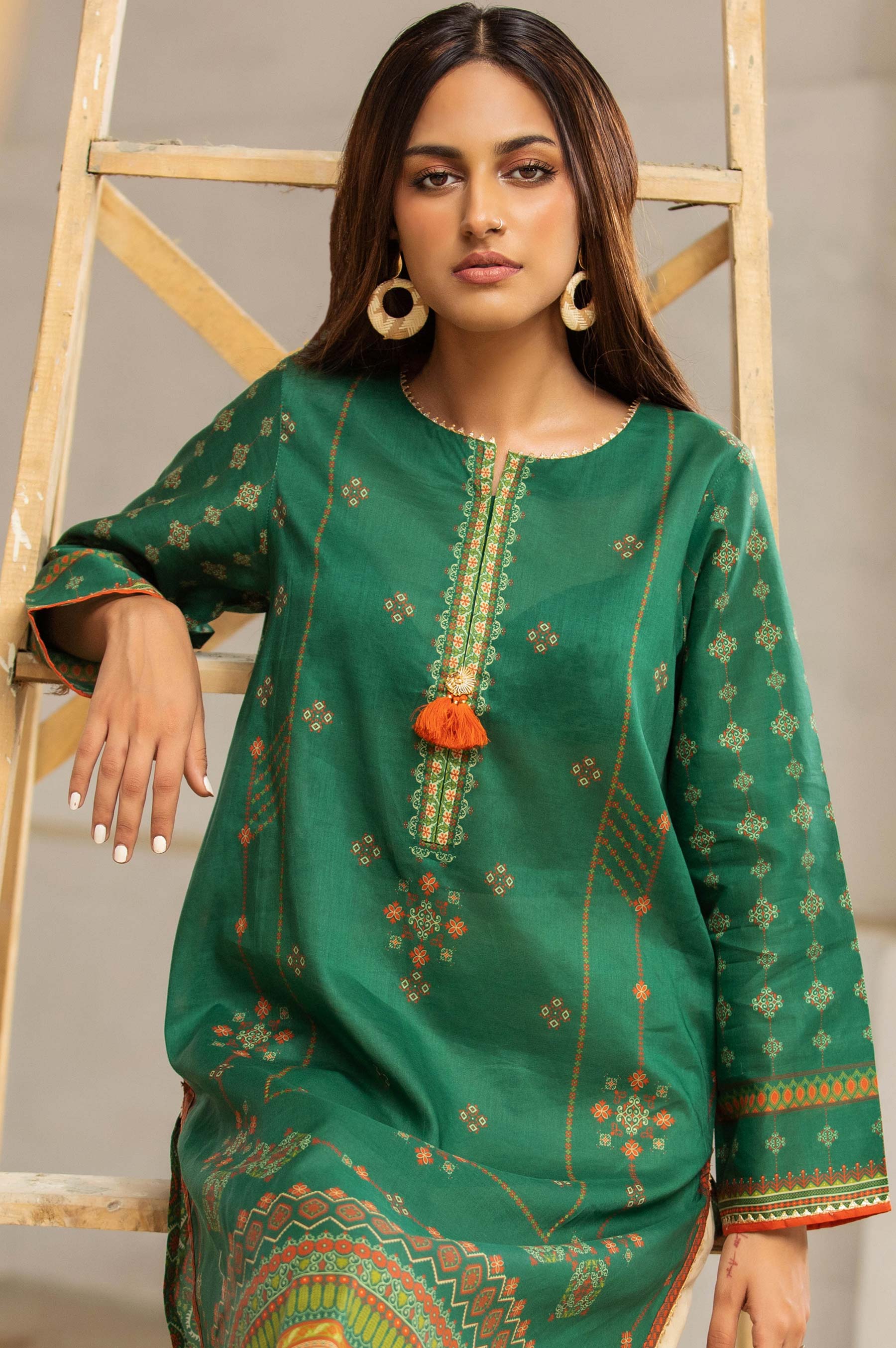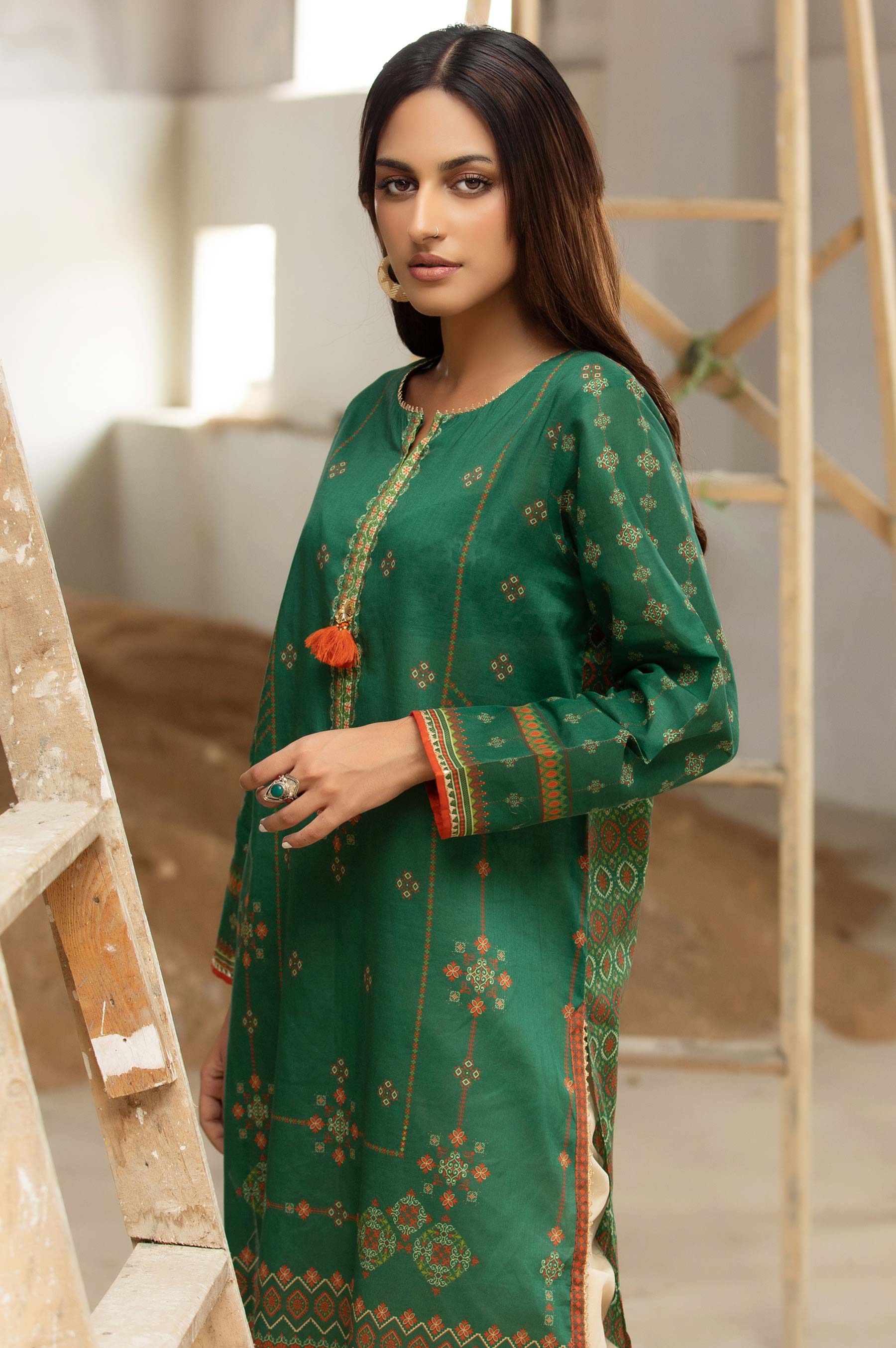 Digital Printed Doria Shirt, Tassels & Lace for Embellishment.