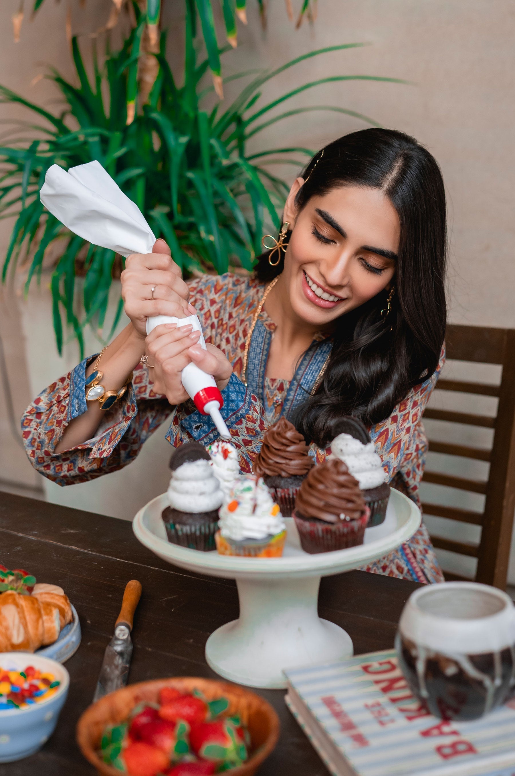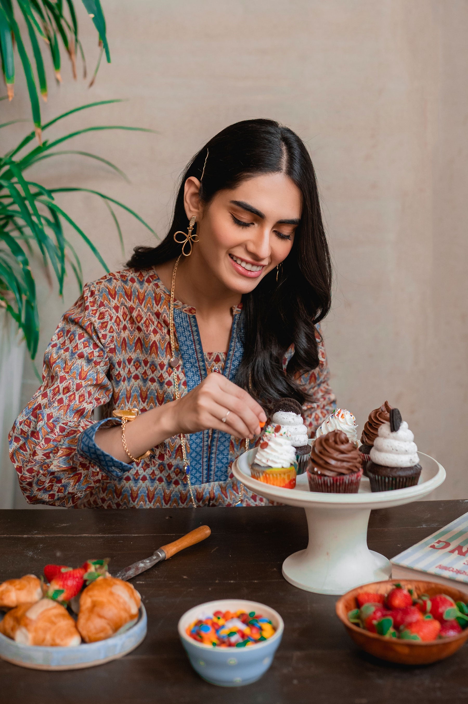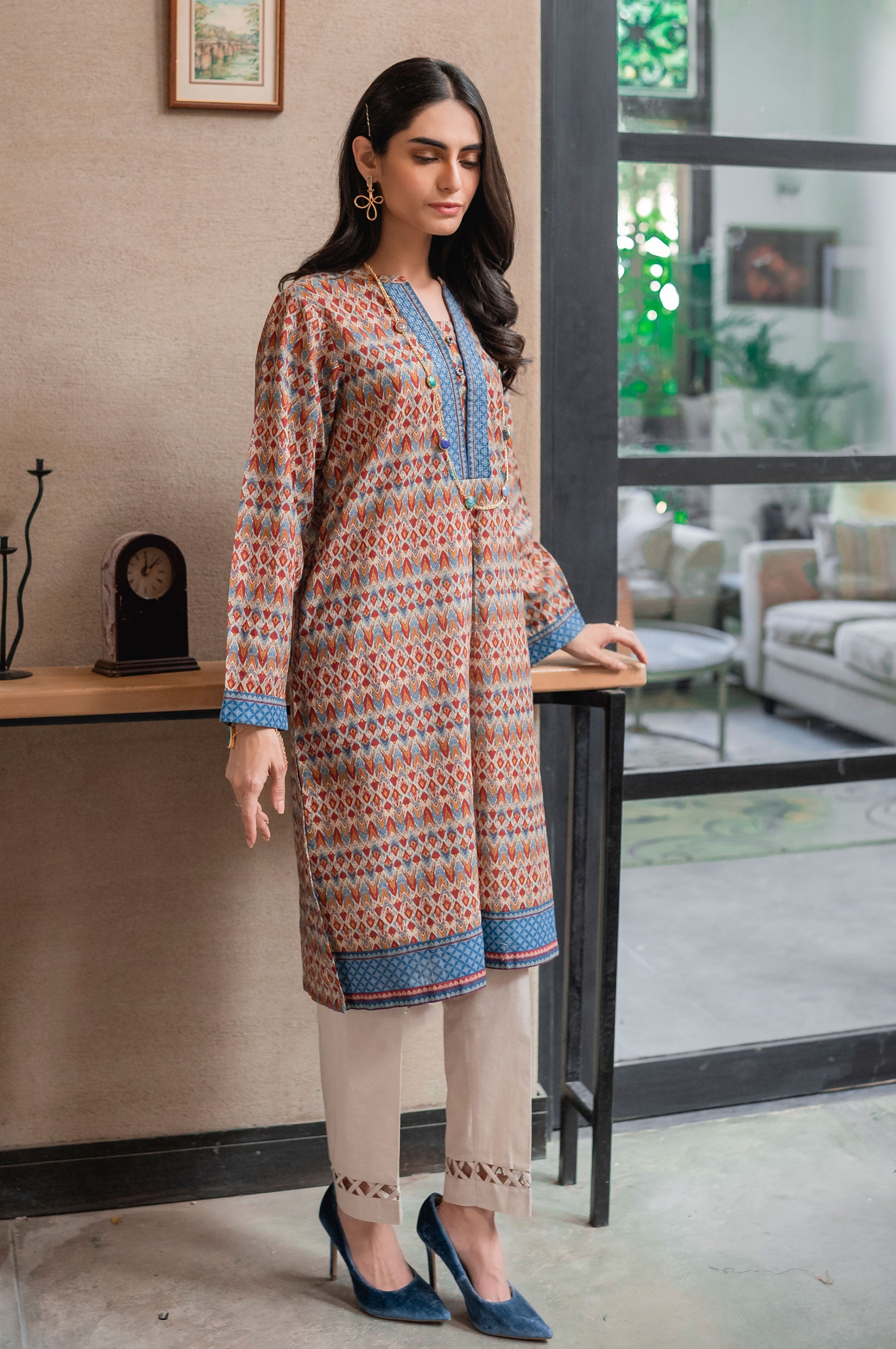 Digital Printed Khaddar Shirt, Beads & Buttons for Embellishment.
