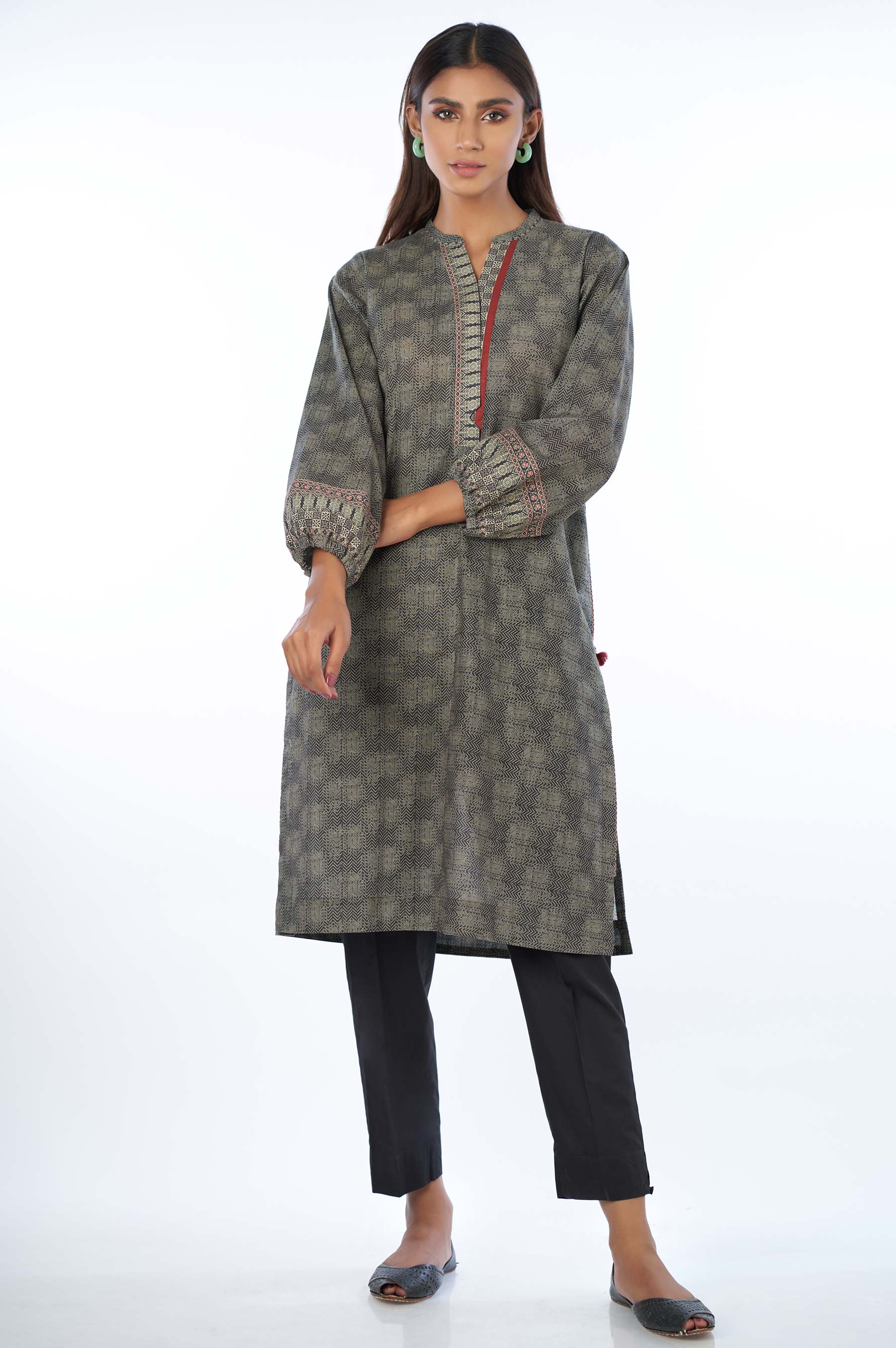 Printed Khaddar Shirt, Beads & Tassels for Embellishment