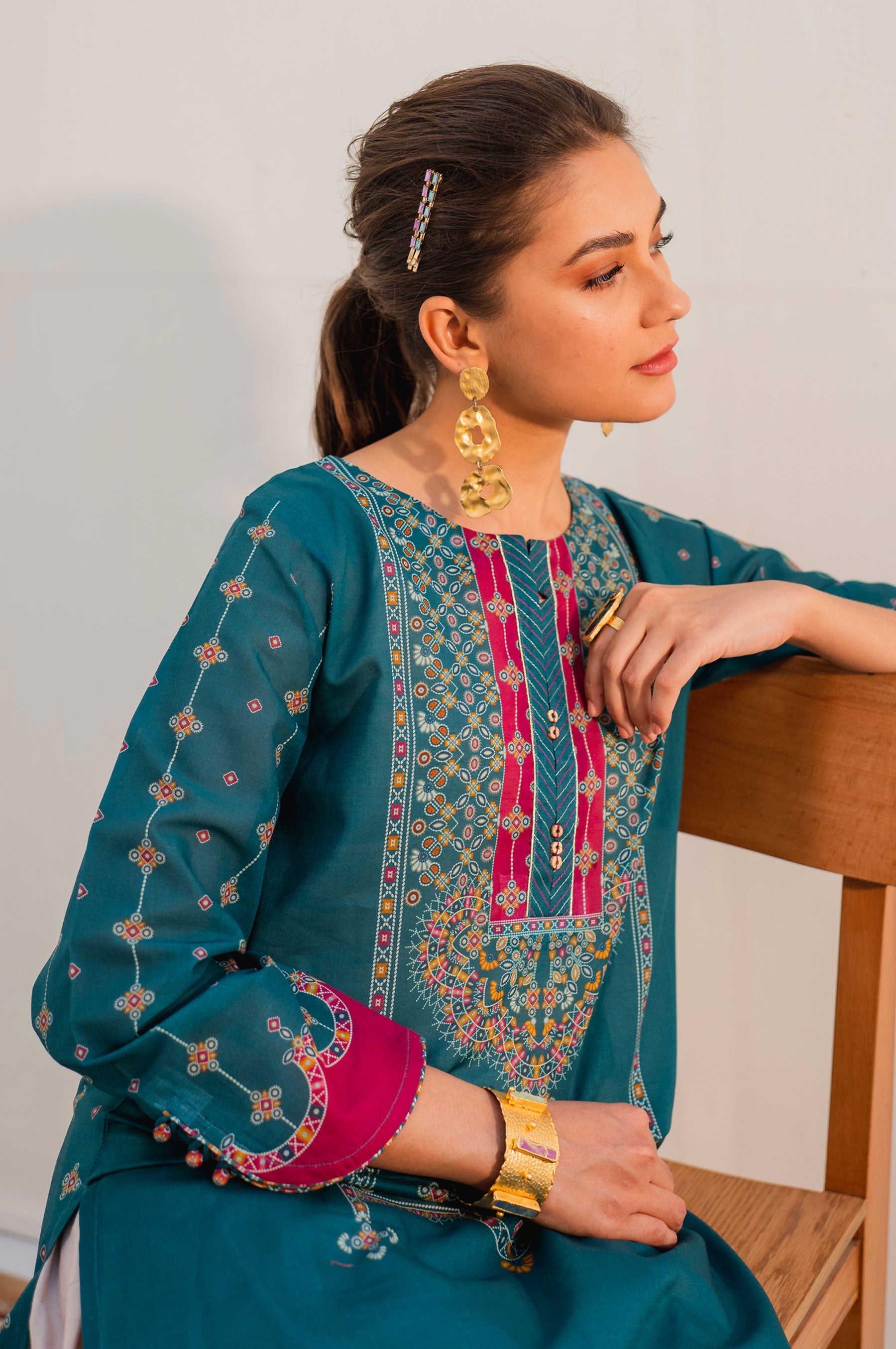 Digital Printed Lawn Shirt, Bead,Pearl & Dori for Embellishment