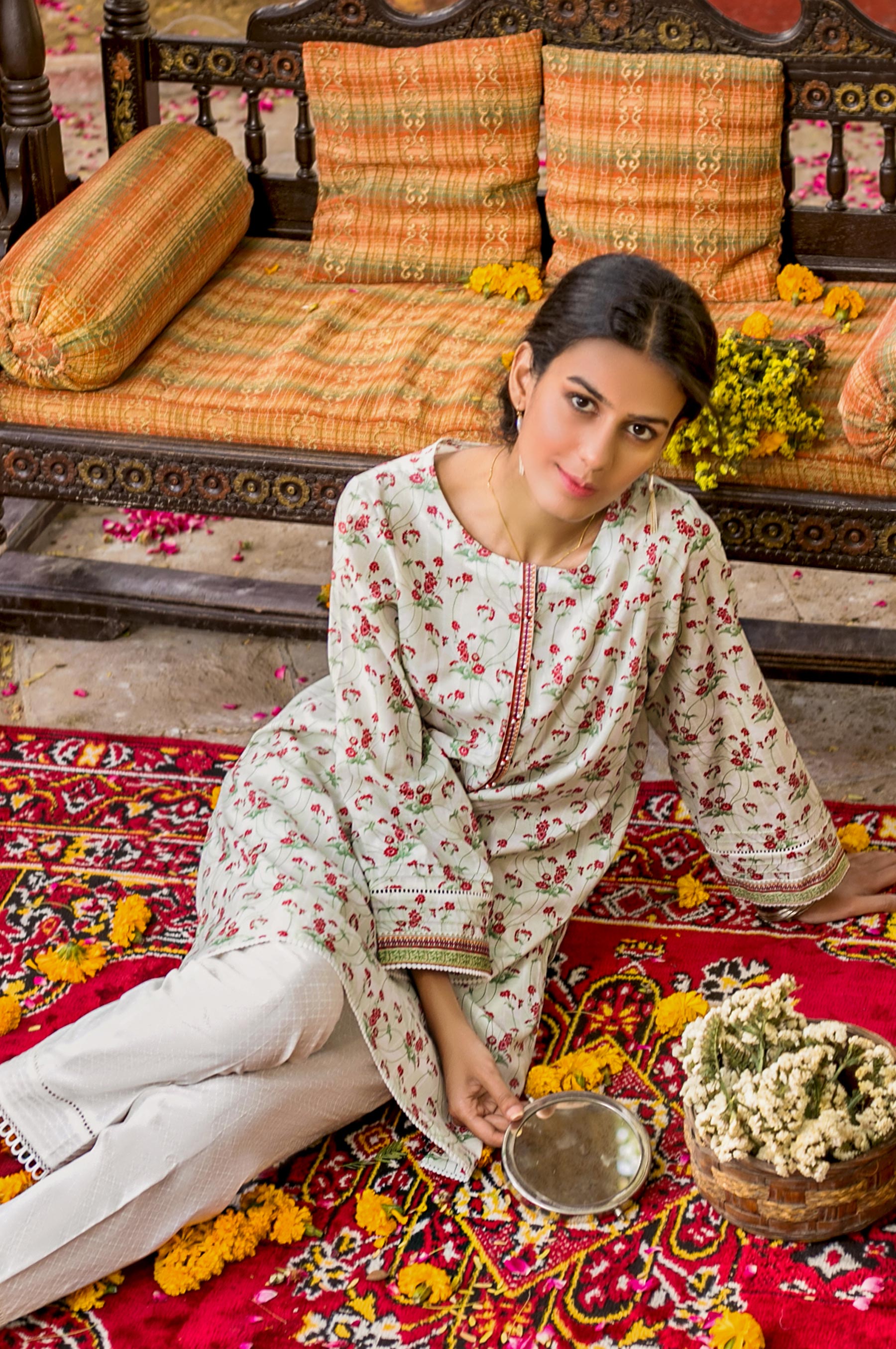 Digital Printed Self Jacquard Shirt, Beads, Pearls & Laces for Embellishment, Fit n Finish: Fit: Regular, Length: 37"