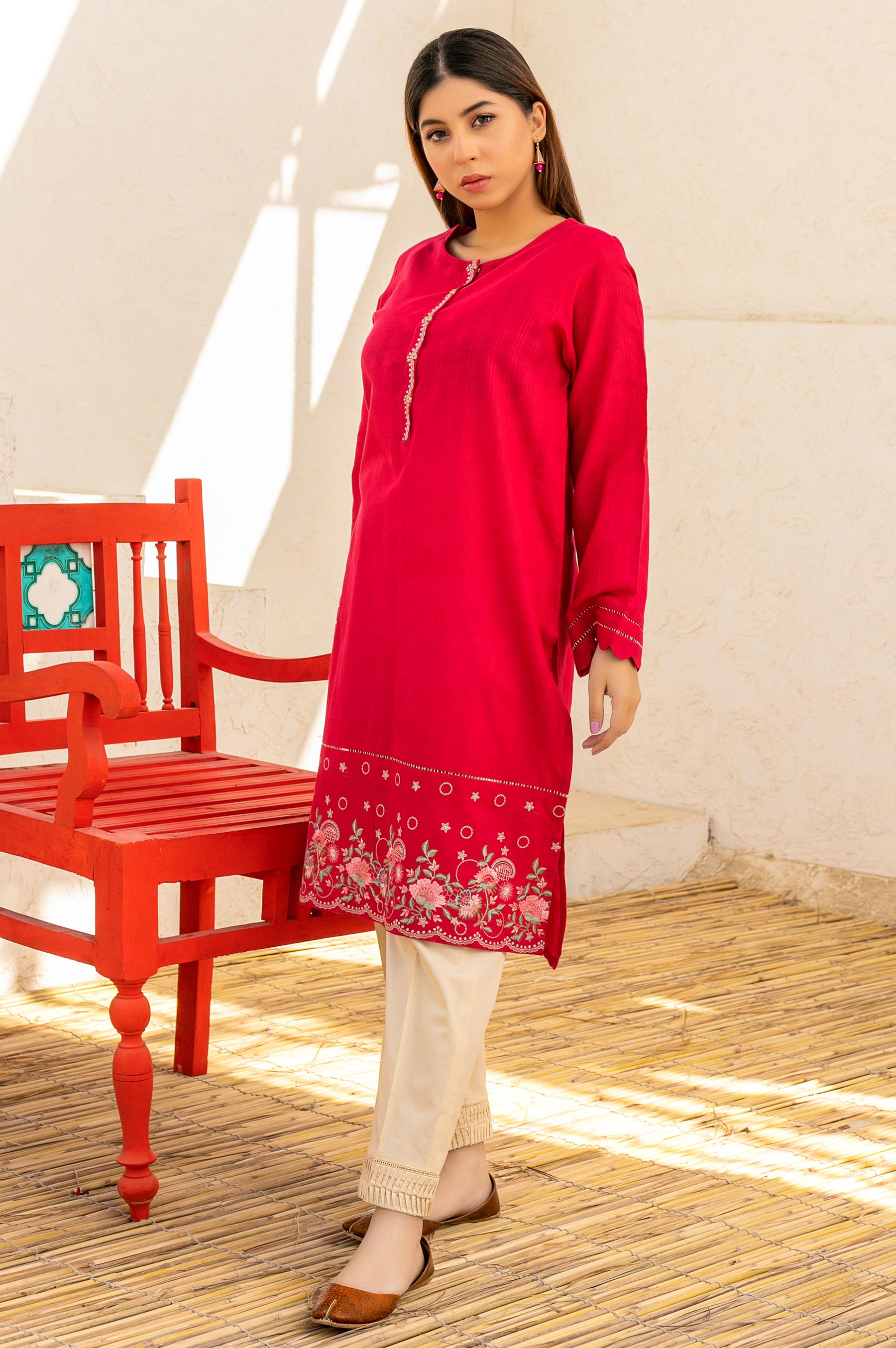 1 Pieces Stitched Embroidered Dyed Doria ShirtFabric: Doria