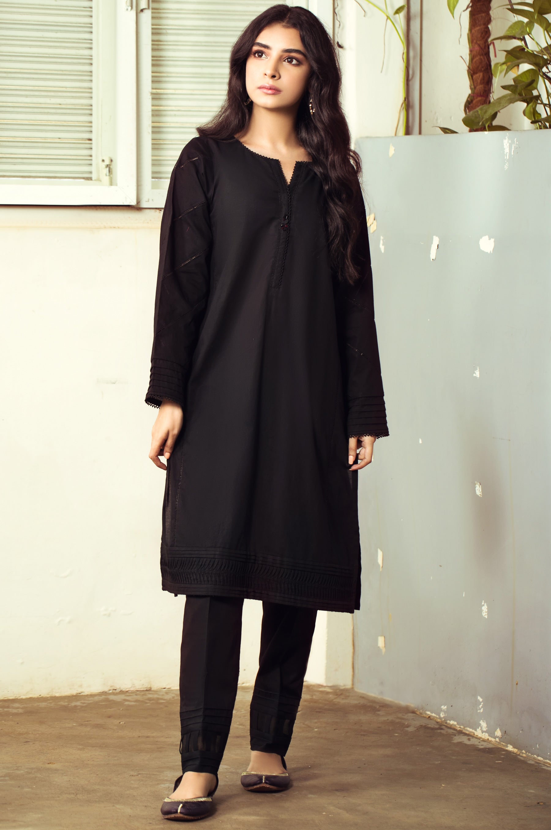 Go ALL BLACK this season with the latest collection in solid pret. Stylized with laces and buttons, this kurta is simply beauty with grace .