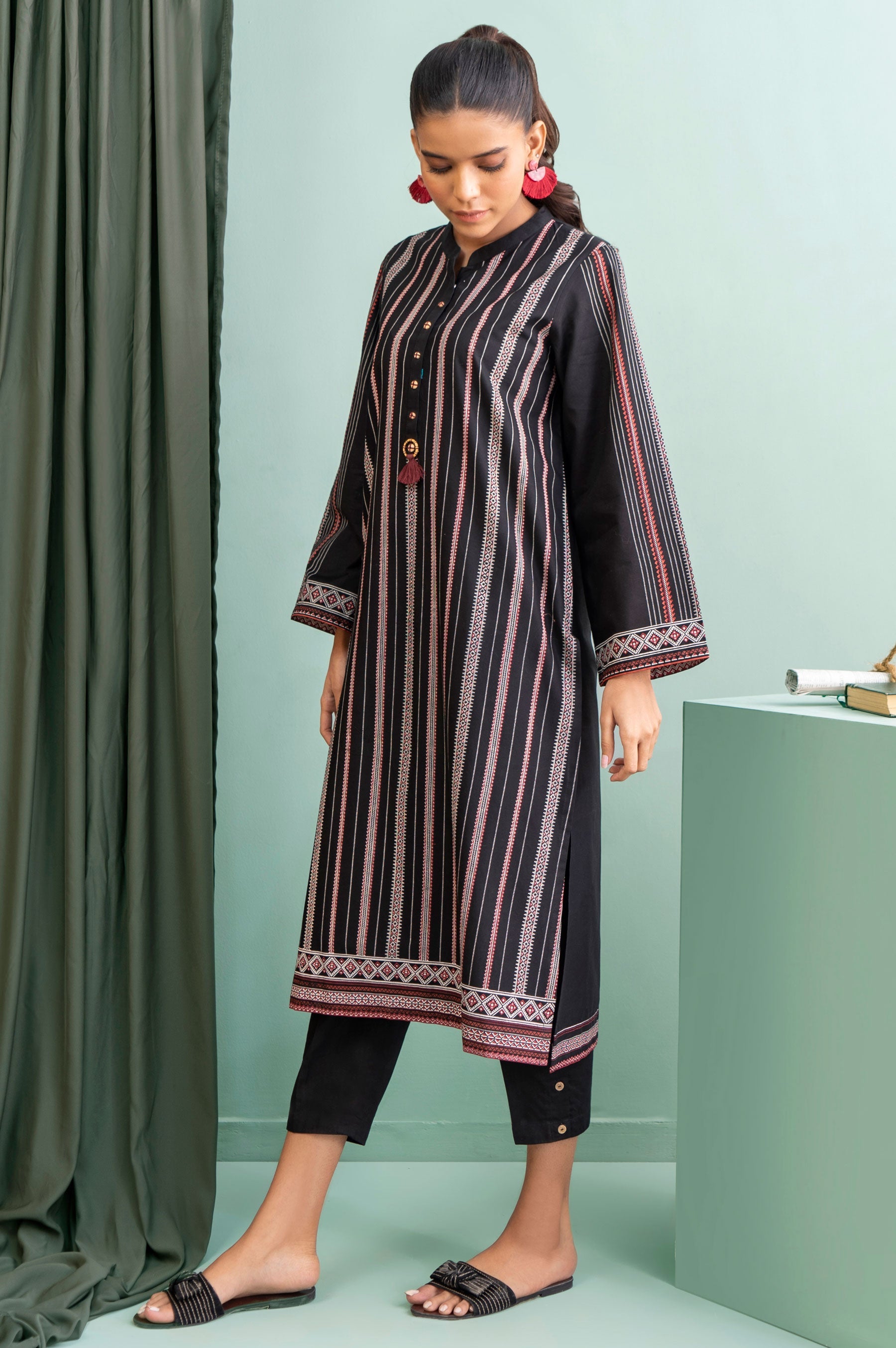 An effortless screen printed kurta inspired by Aztec patterns is all you need this season.Pair this versatile piece with our black statement pants..
