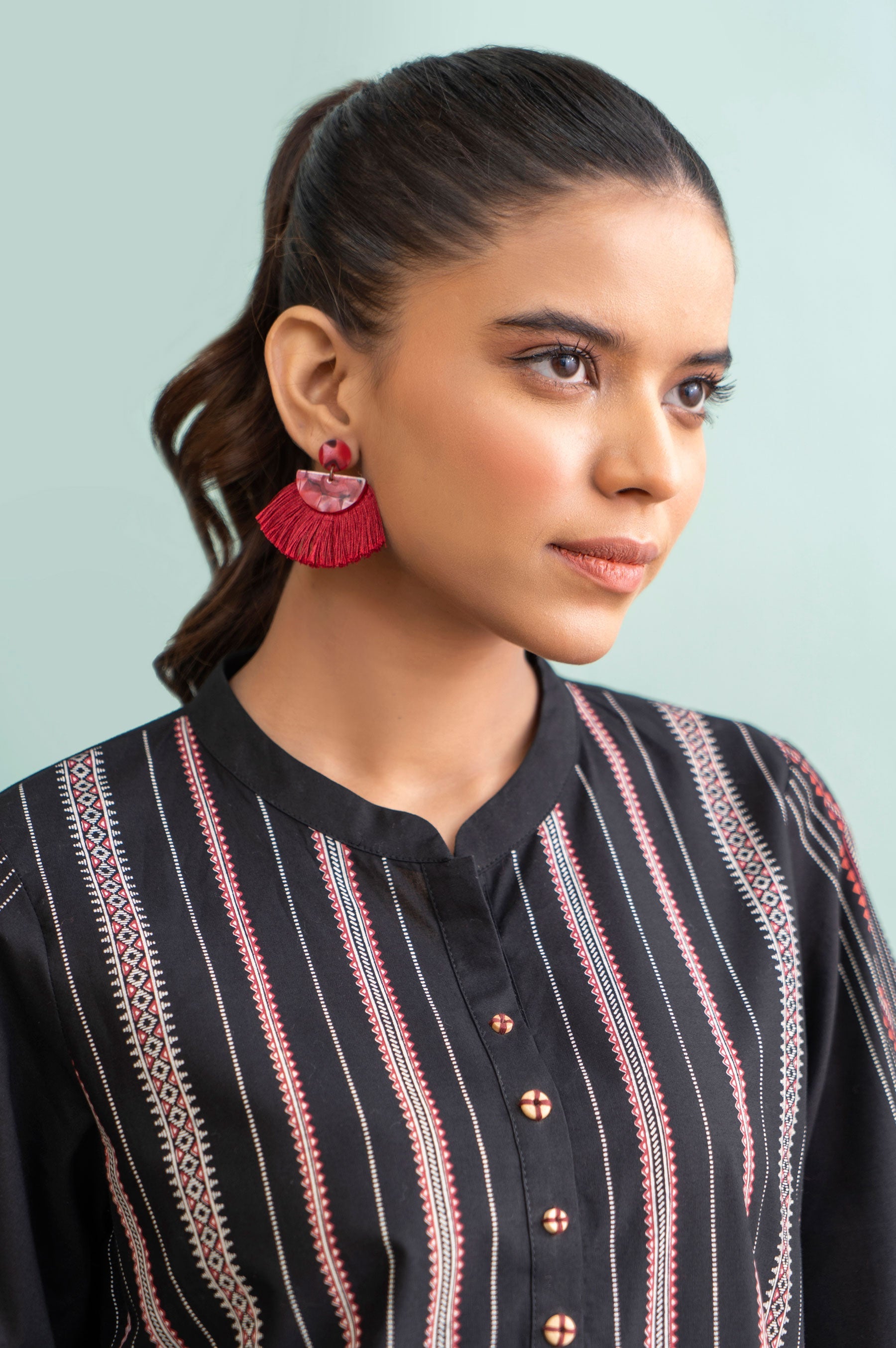Stitched 1 Piece Embellished Screen Printed Cambric Shirt