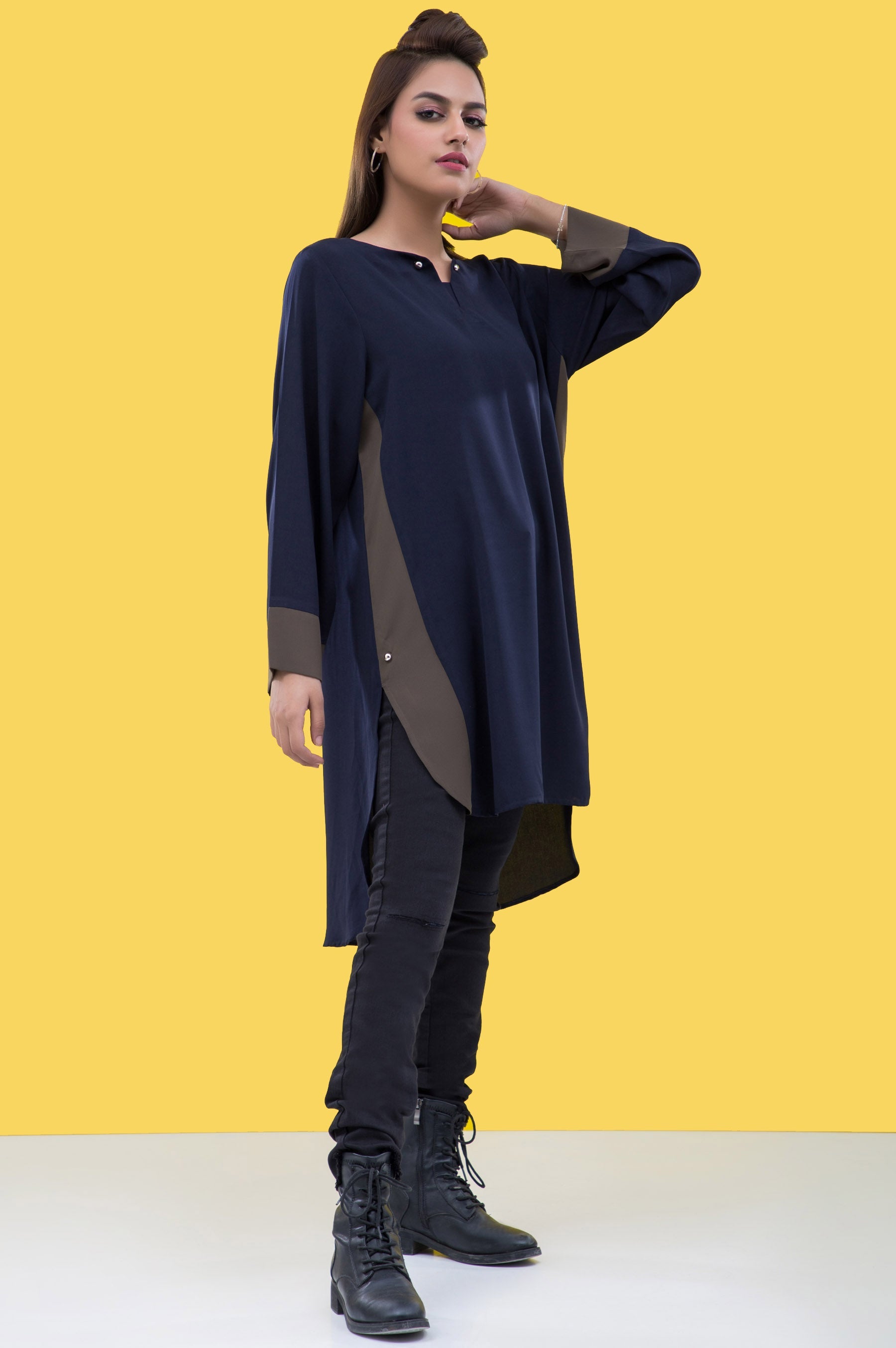 which are embellished with metallic studs. Sleeves are also color blocked completing the look.