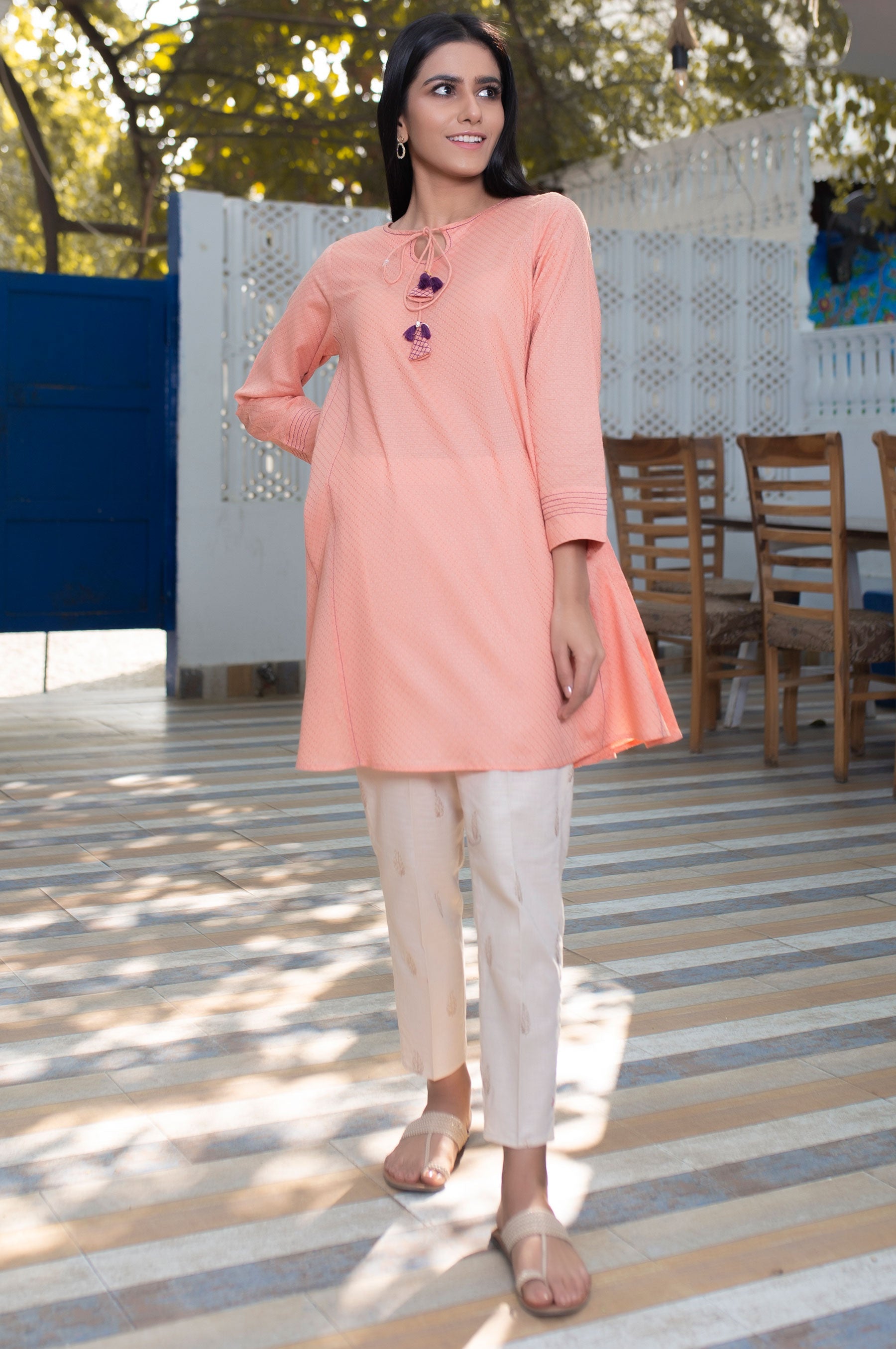 A contemporary kurta with panels and fabric manipulation with contrast color, for perfect for summer evenings.