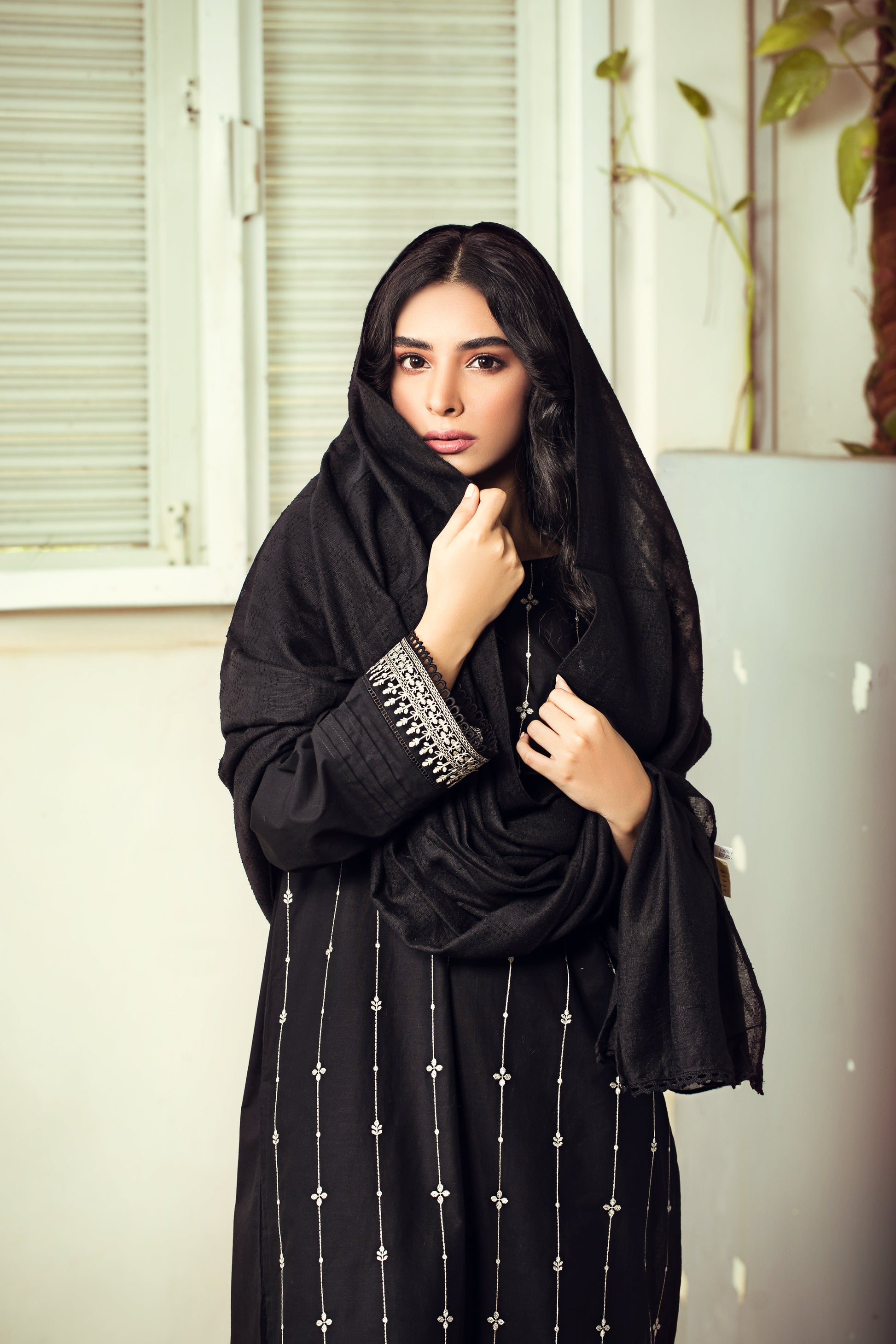 This gorgeous black kurta is fully yet elegantly embroidered in ash-whites hues. It has pretty lace detailing on the sleeves and small crystal buttons on the neckline. Pairs well with our straight black pants.
