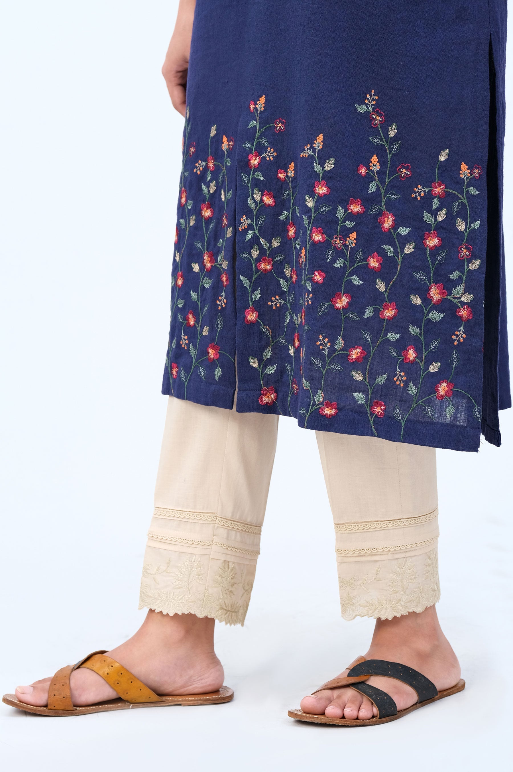 A aesthetically rich design illustrated in mesmerizing floral embroidery at bottom line with appealing colors and beads details on placket. Style this gorgeous shirt at family gathering to warm up the bond.