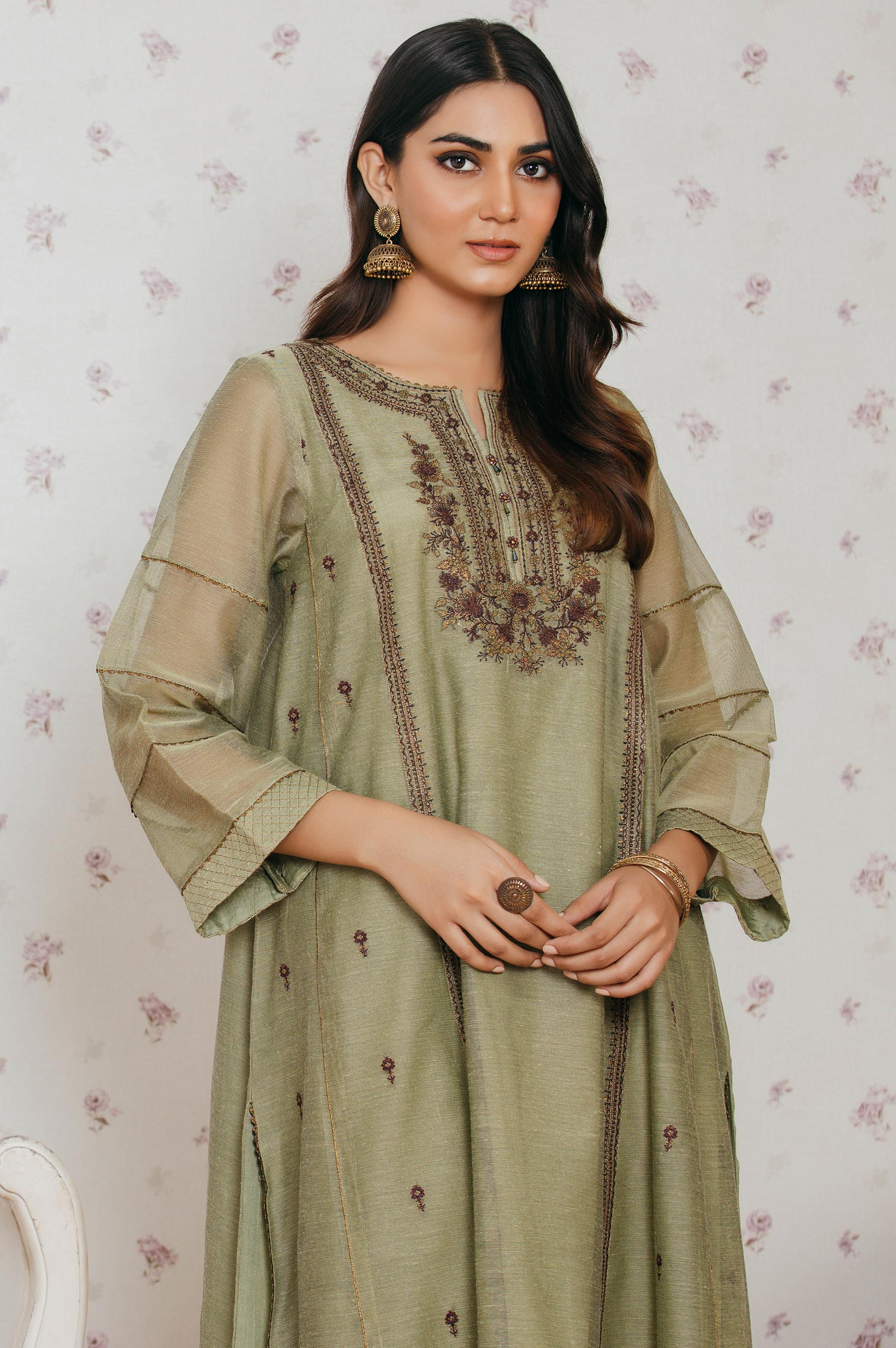 Khaddi Net Embroidered Shirt, Front & Sleeves Embroidered.
