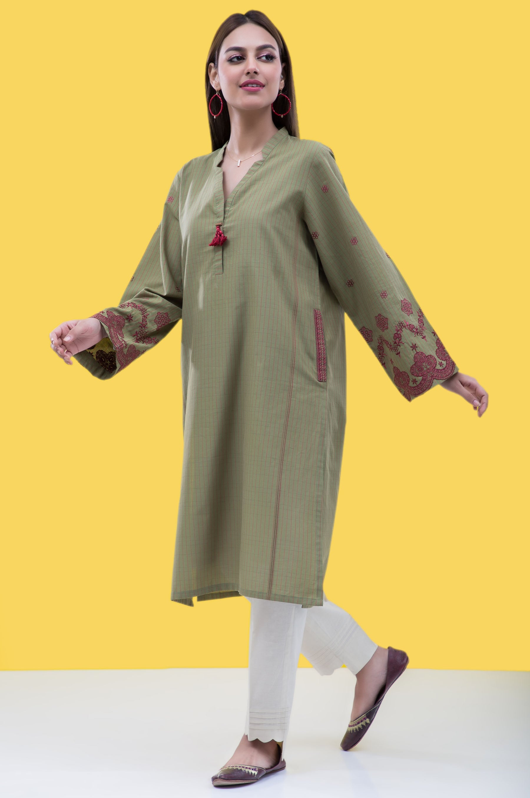 Stitched 1 Piece Embroidered Yarn Dyed Shirt, Embroidery at Sleeve & Pocket