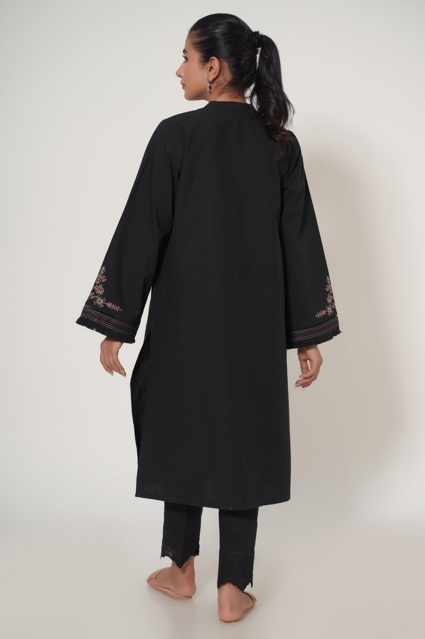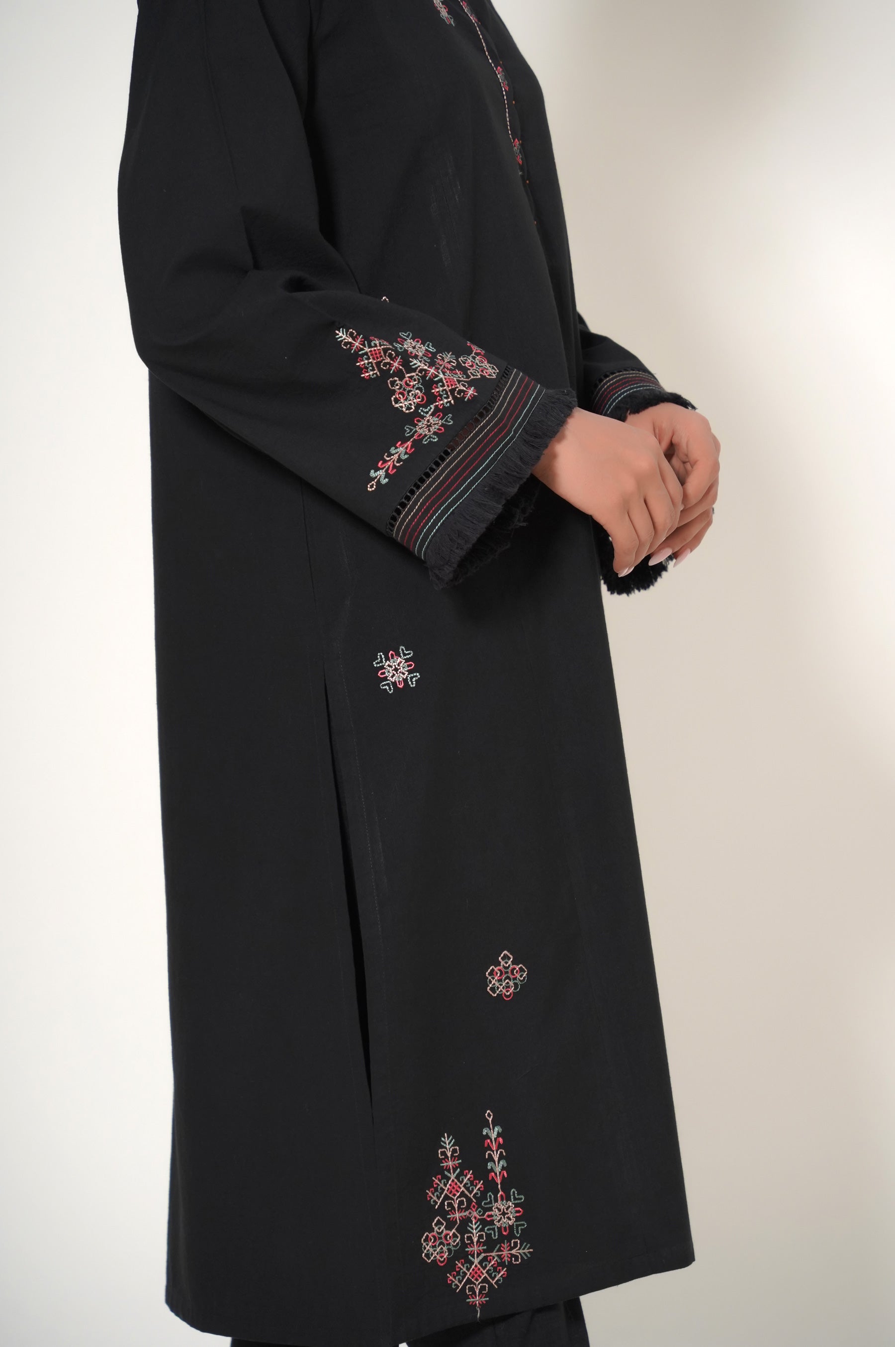 Elevate your wardrobe with this classic black slub lawn shirt, featuring our signature resham thread embroidery that adds a touch of sophistication and elegance to this versatile wardrobe staple. Perfect for any occasion.