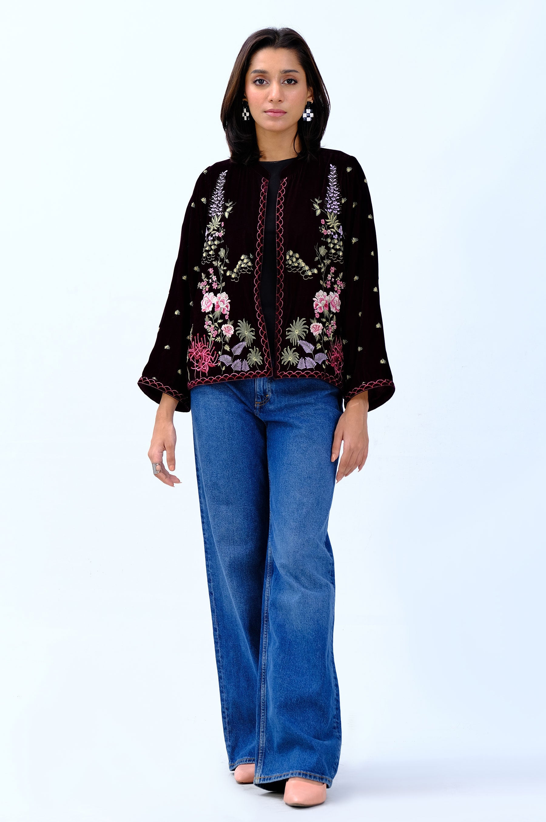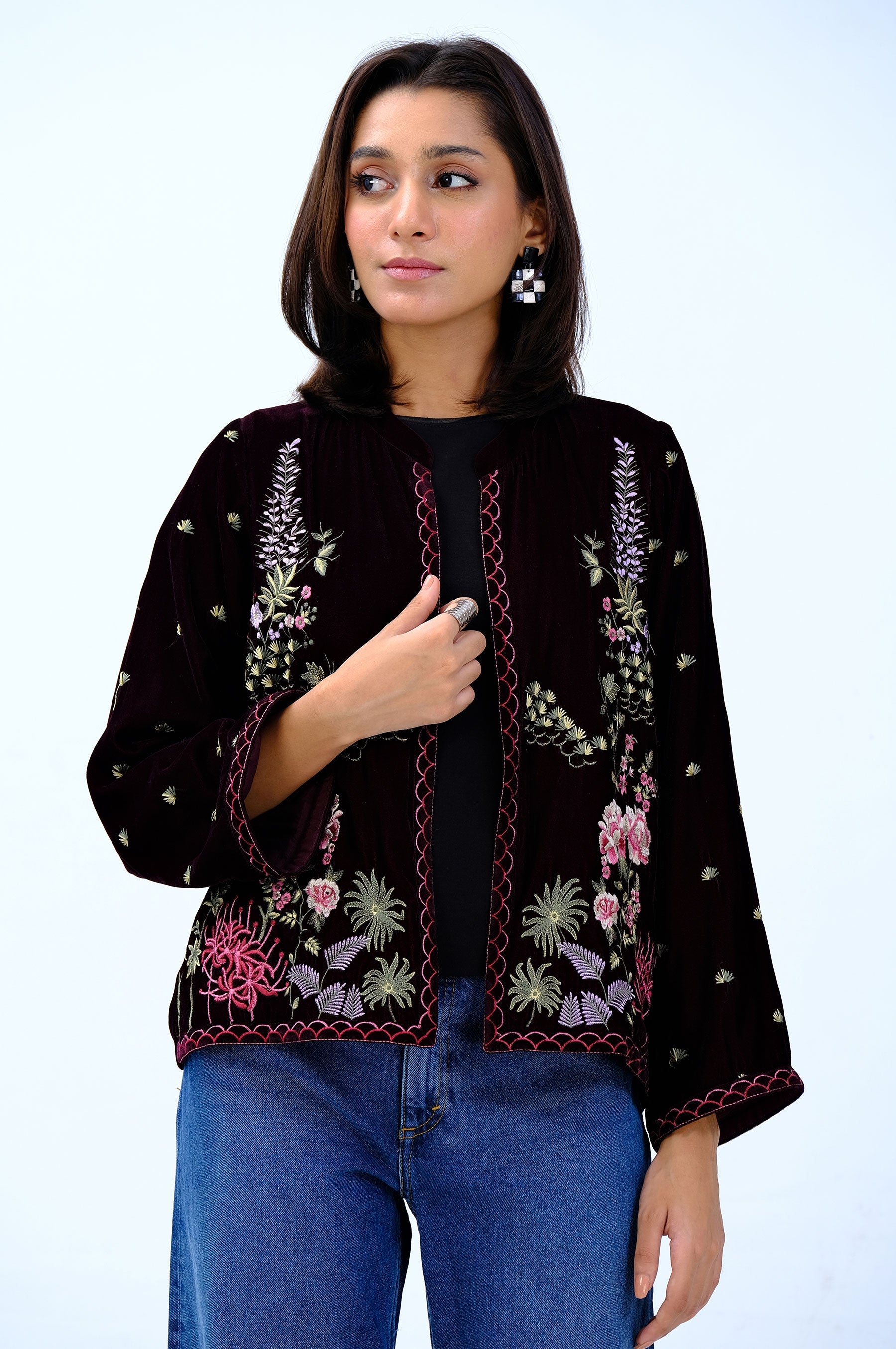 Stitched 1 Piece Embroidered Velvet Jacket