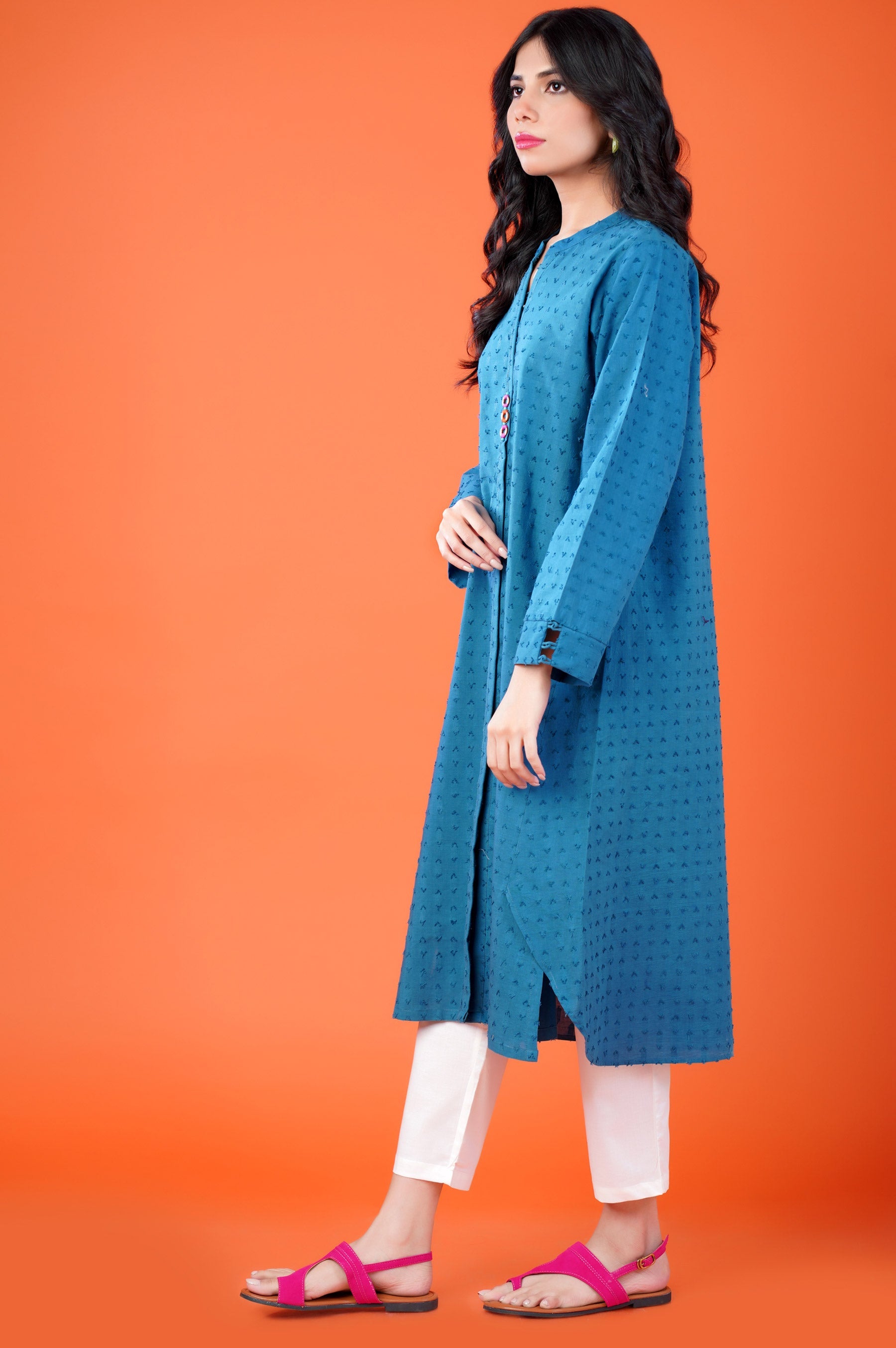 An elegant yale blue shirt with a minimal embellishment on the placket and interlacing loop detailing on the cuff gives depth to the outfit. It is a must have piece for an upcoming season. Pair up the look with our off-white pants for a relaxed yet an impeccably chic look.