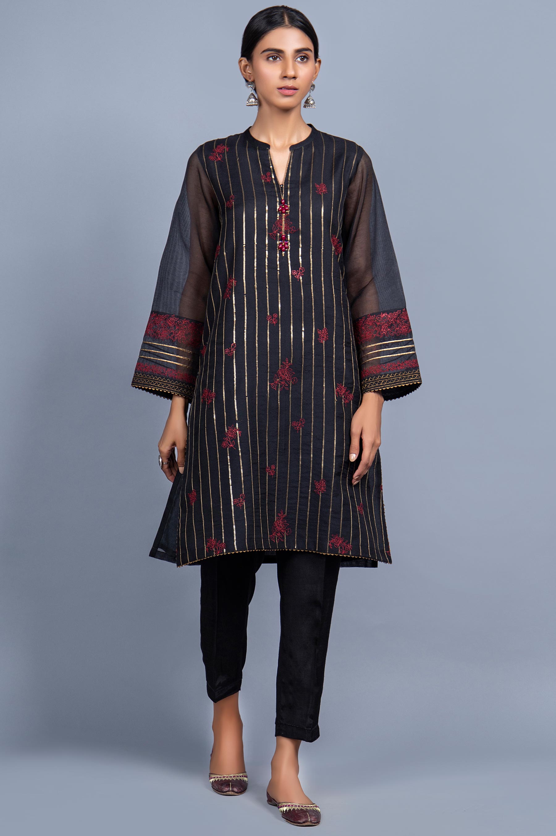 Organza Striped Embroidered Shirt, Front & Sleeves Embroidered