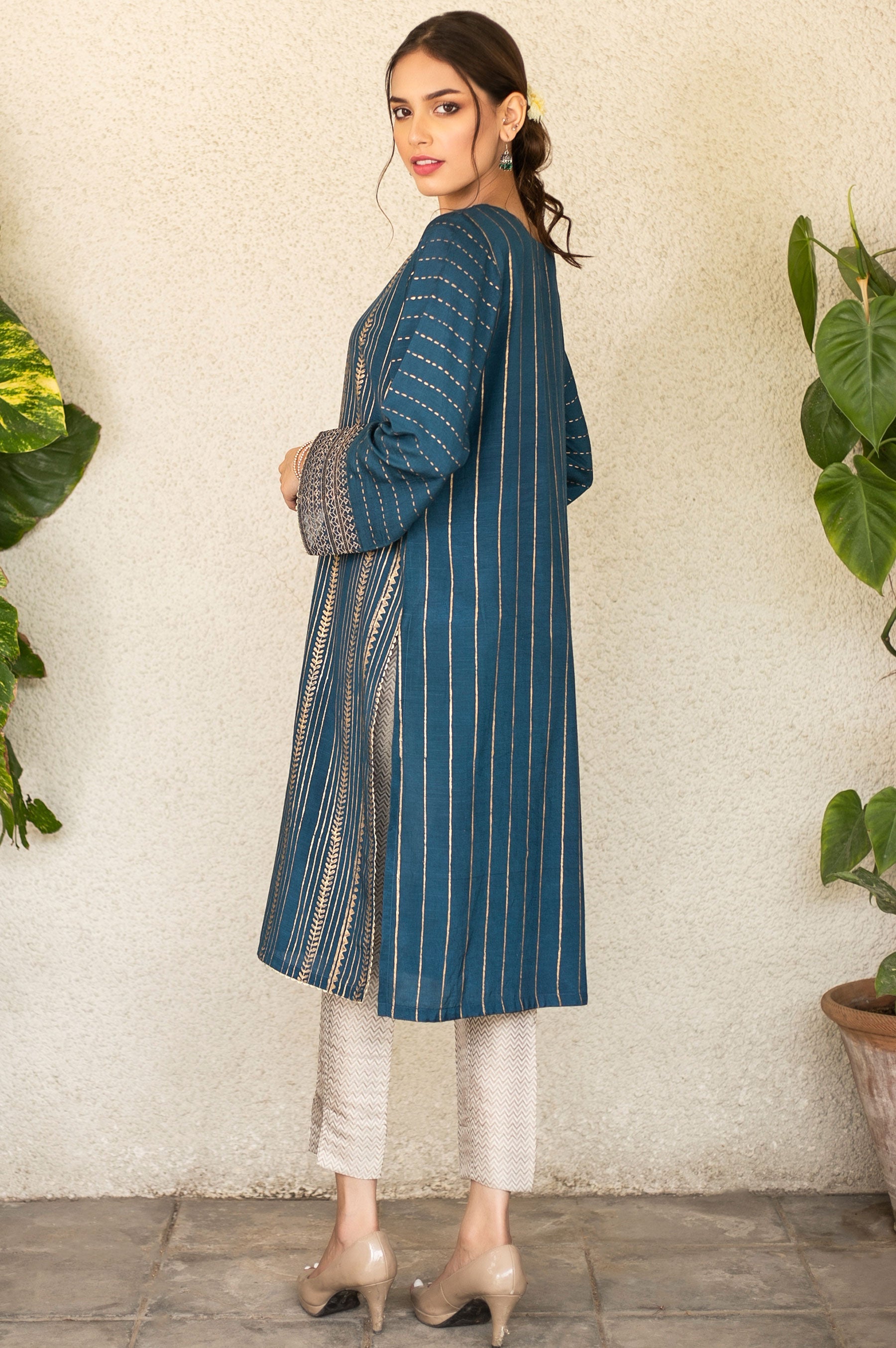 Stitched 1 Piece Raw Silk Embroidered Shirt