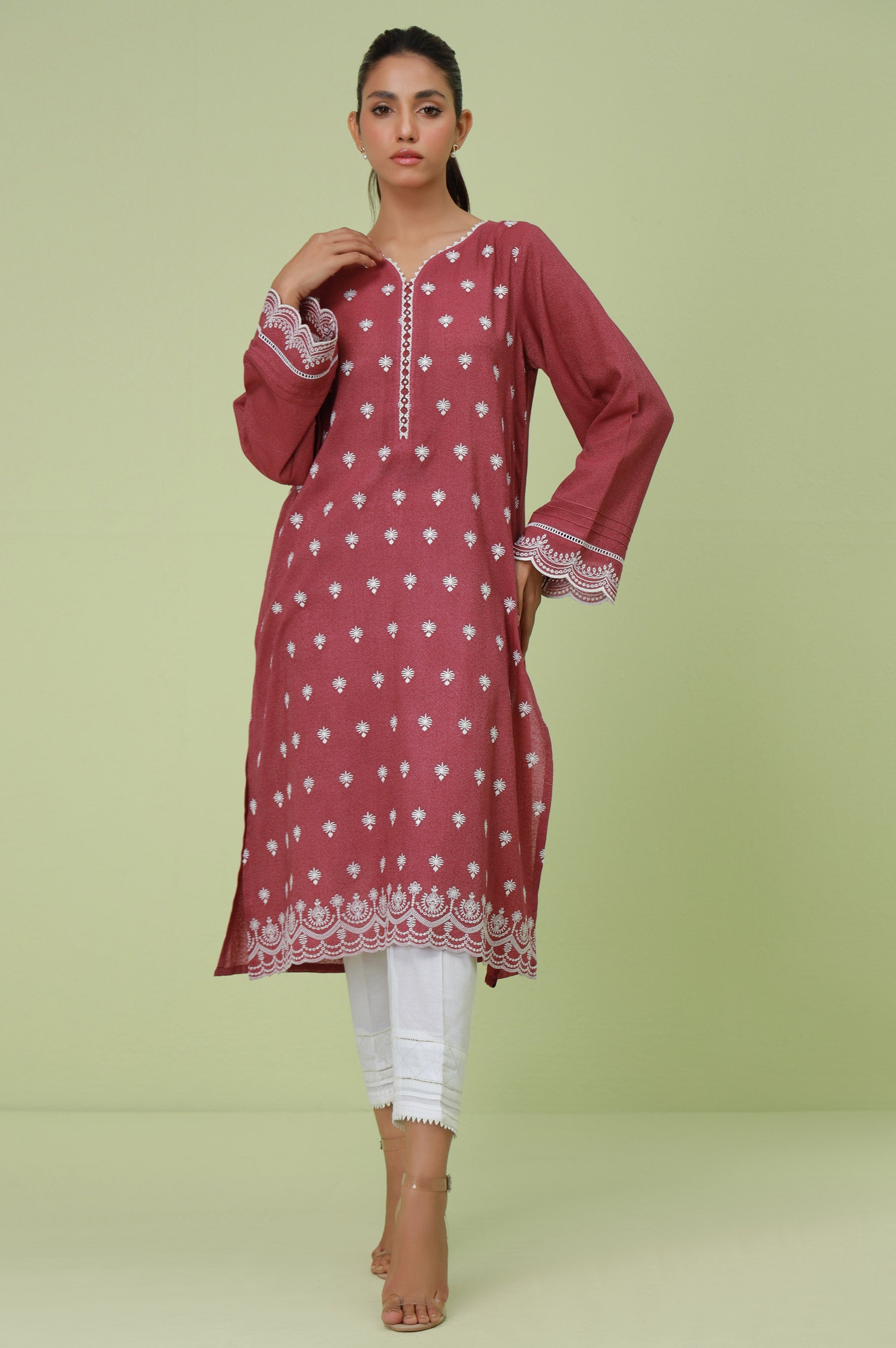 Radiate elegance in this 1 piece stitched pink textured lawn chikankari embroidered shirt. The chikankari embroidery in delicate pink adds a touch of grace, making it an ideal choice for various occasions.