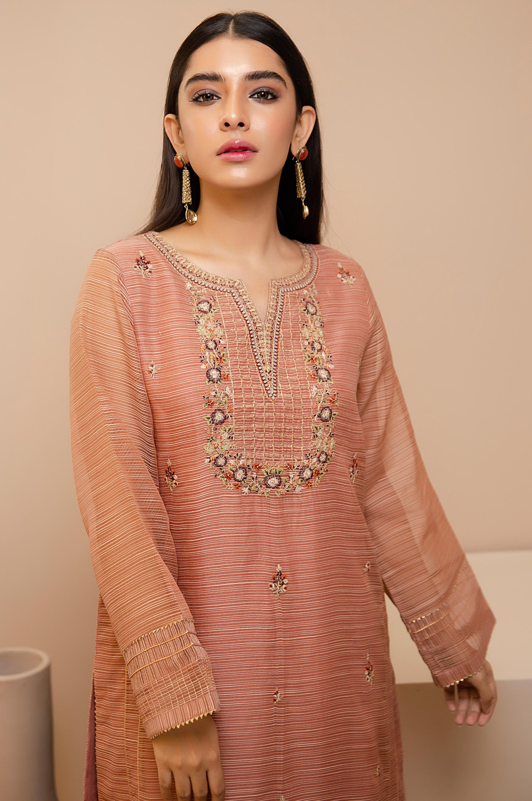 Slub Organza Embroidered Shirt, Front & Sleeves Embroidered