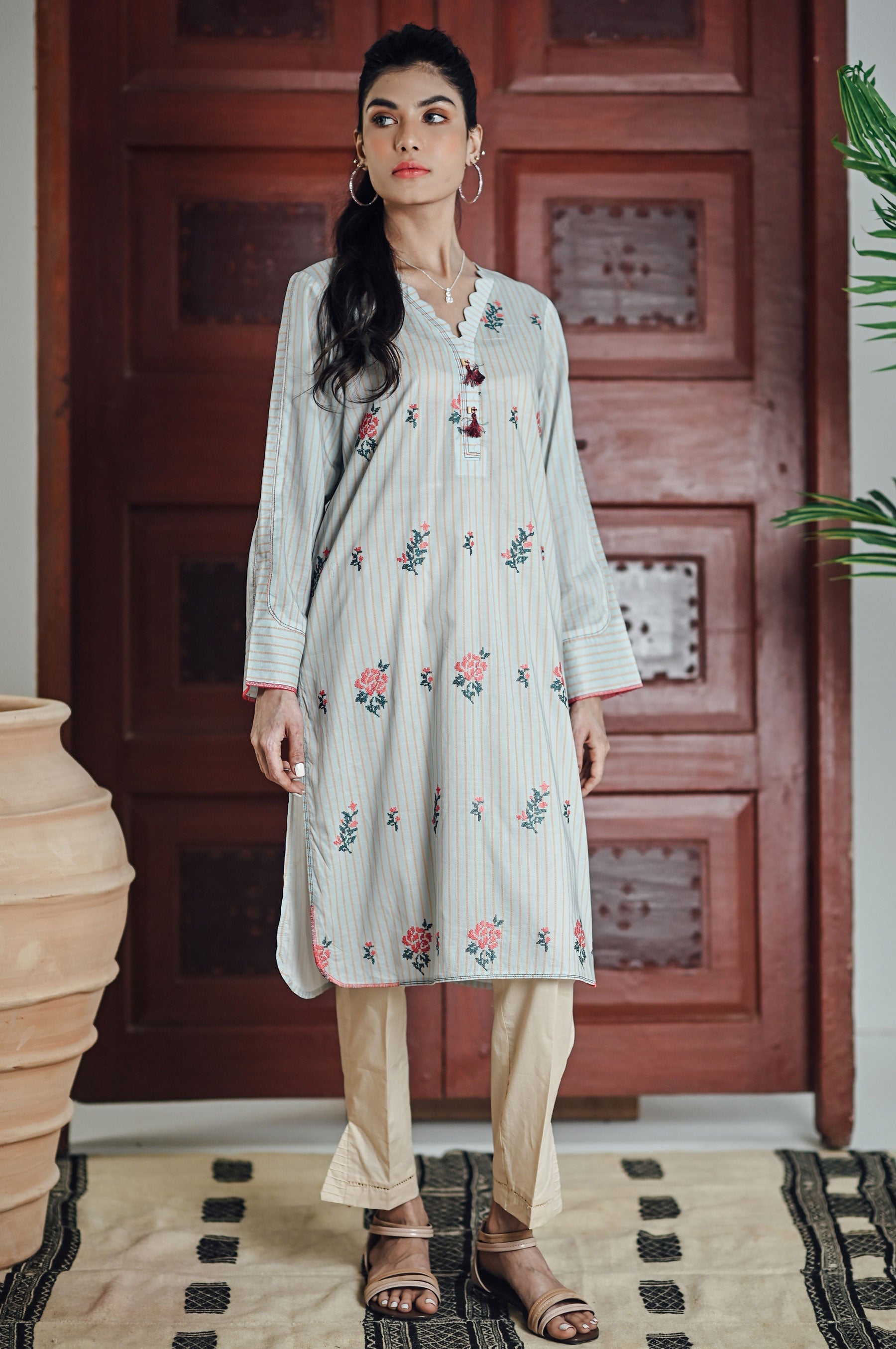 Fresh, new styles for a chic, updated wardrobe. We're swinging into summer with this yarn dyed shirt, designed with cross stitch embroidered motifs, bursting with bright colours and hassle free embellishments that instantly takes the spotlight.