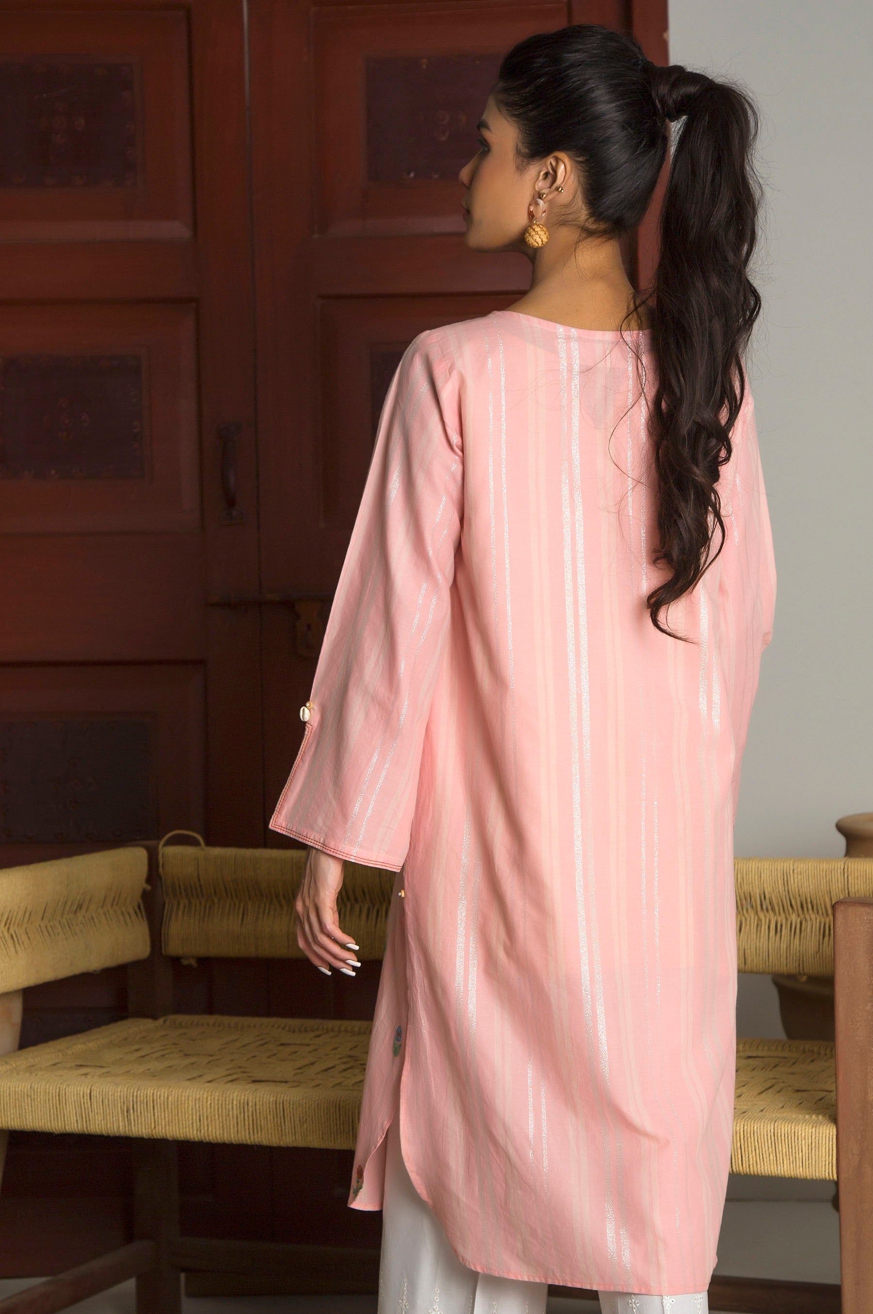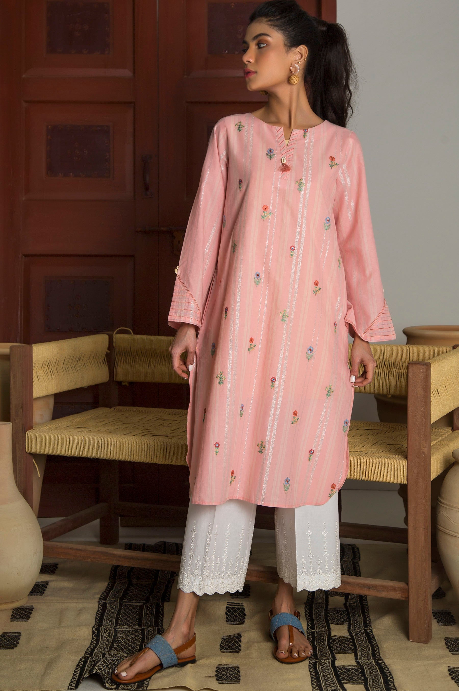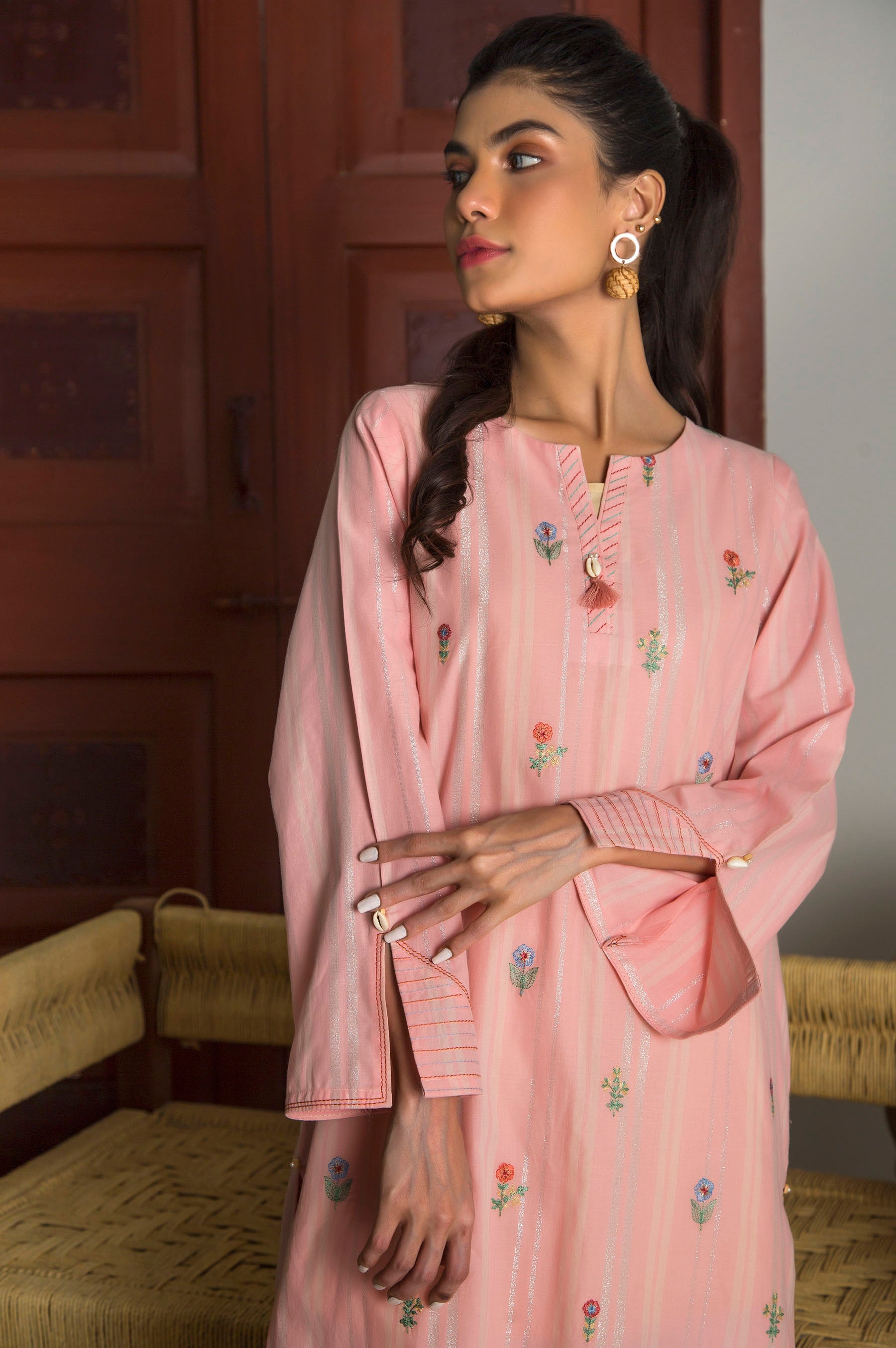 For the days you want to look chic and trendy,go for our beautiful Powder pink Yarn dyed shirt assembled with trendy floral motifs allover the front and sleeves are stylized with contrasting color stitches.To complete the look pair it with straight white Zeen's Bottom.The length of the shirt will vary from 40-42 inches in different sizes.