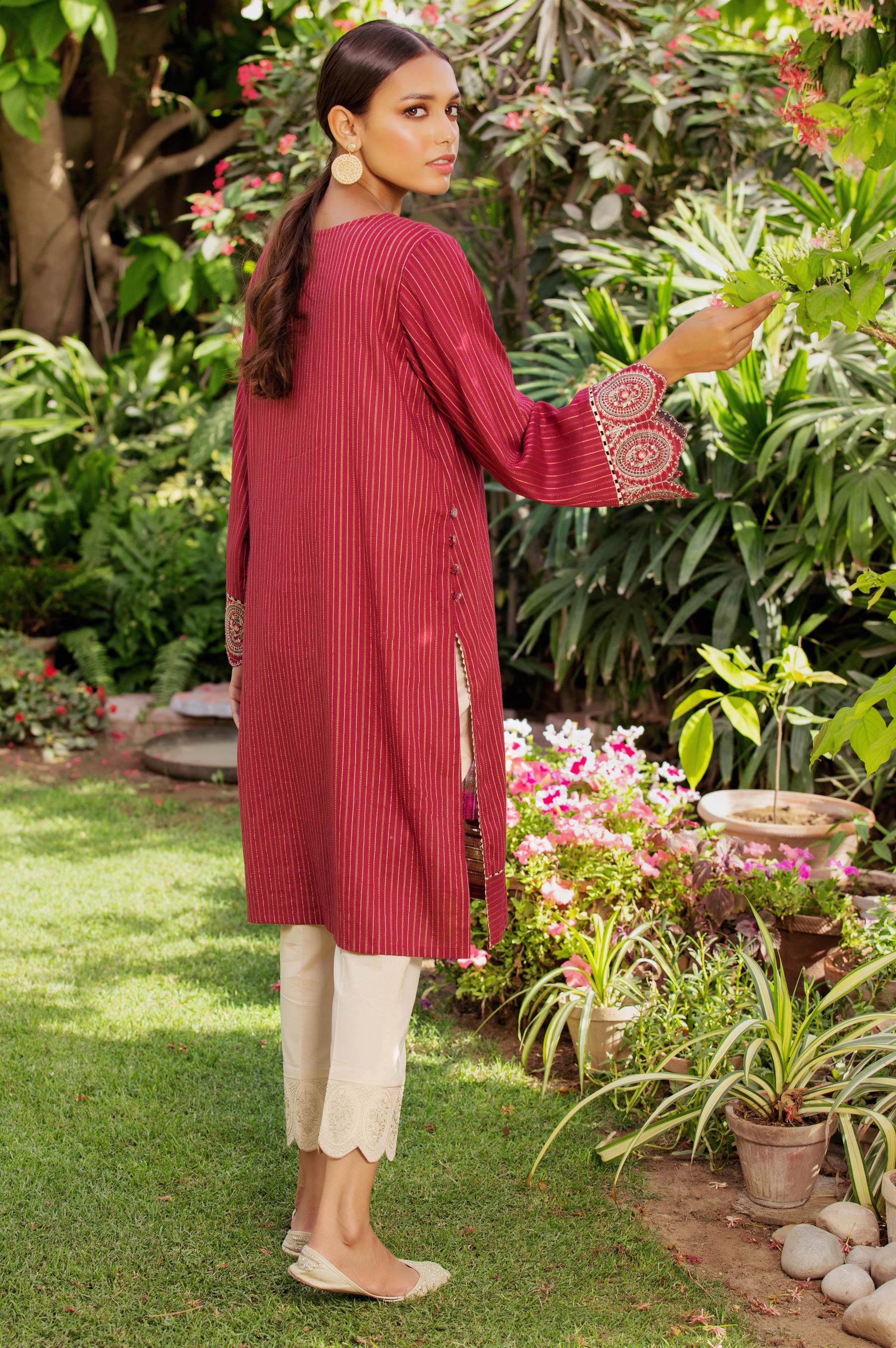 Dress up in colors which beautifully enhance your personality. This embroidered Zari Turkishi ready to wear kurta, adorned with embroidered border on neckline and sleeves to make it stylish.Complete the look by pairing it up with Zeen's Formal bottoms.
