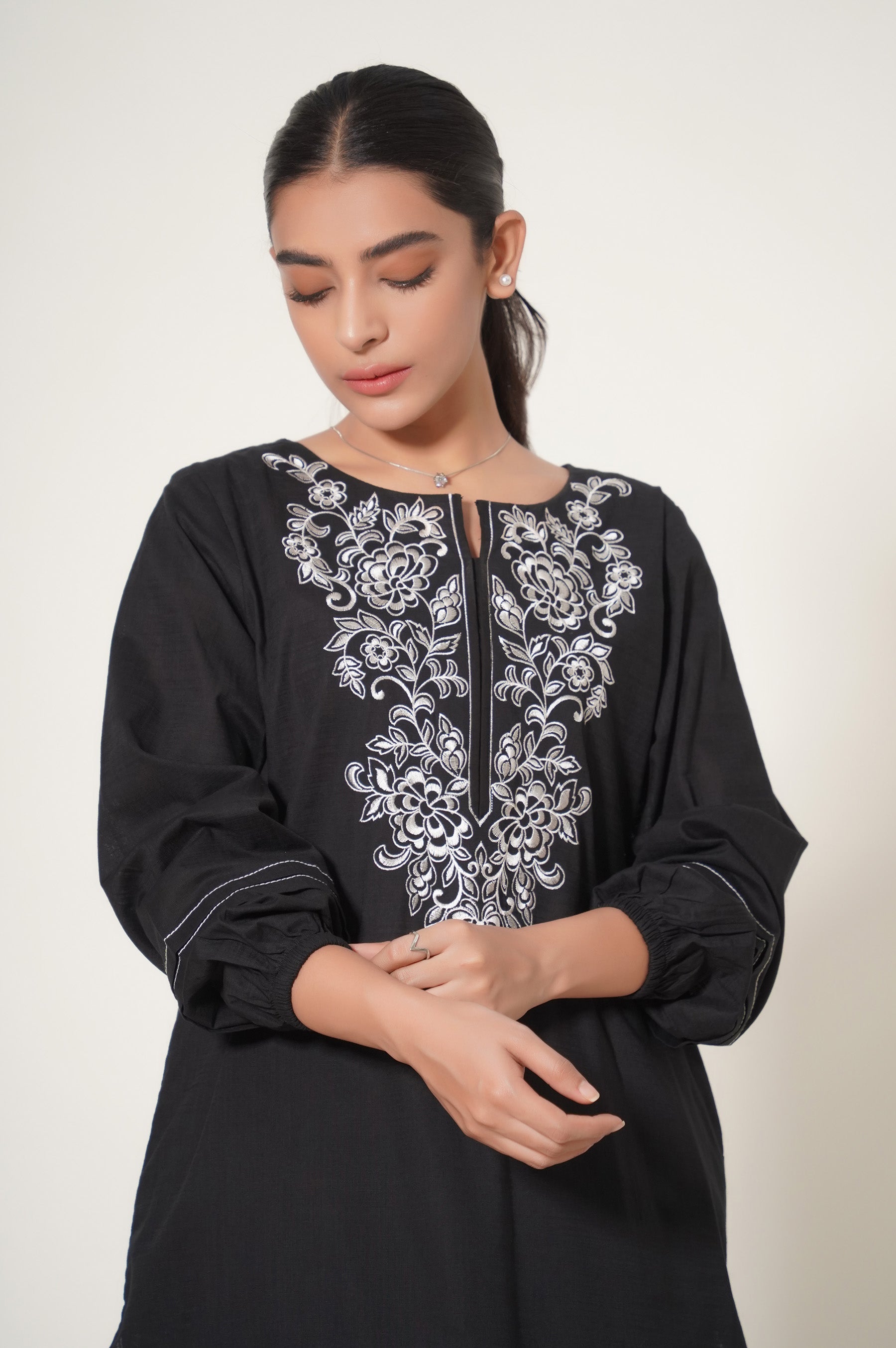 Round Neckline with embroidered neckline