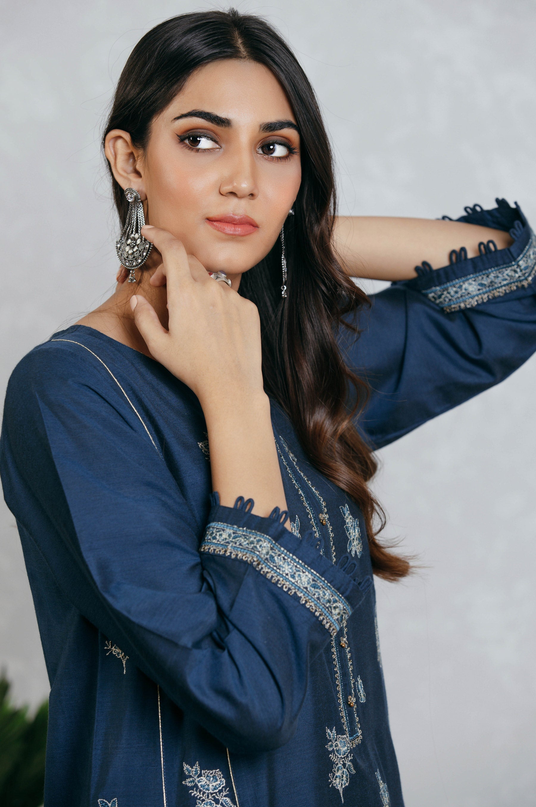 Strike a pose this season in cotton silk fully embroidered A-line shirt, paired with embroidered culottes. Inspired by botanical motif, this unique 2pc outfit with dori embroidery and a impeccable contrast to make you stand out in the crowd.