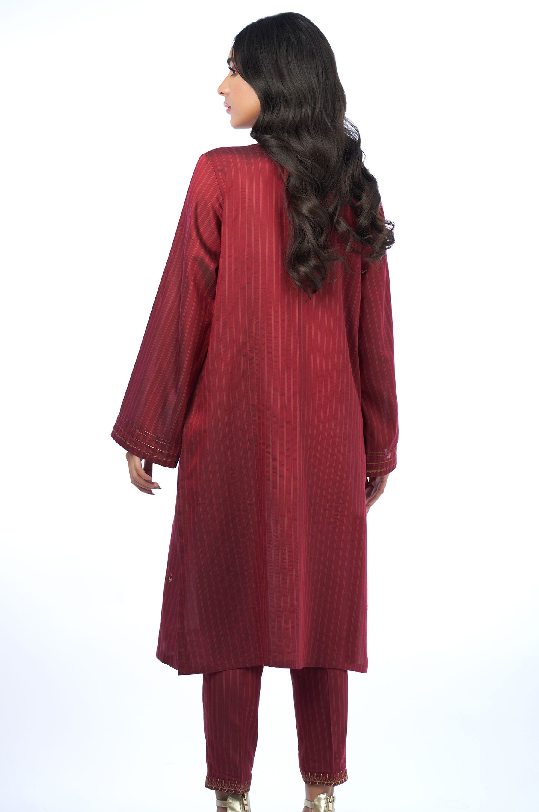 A graceful 2 Piece striped cotton silk elegantly design in a beautiful straight cut with dainty floral embroidery. Paired with cotton silk embroidered cigarette pants, this gorgeous 2-piece embroidered outfit is perfect for your evening soirees.