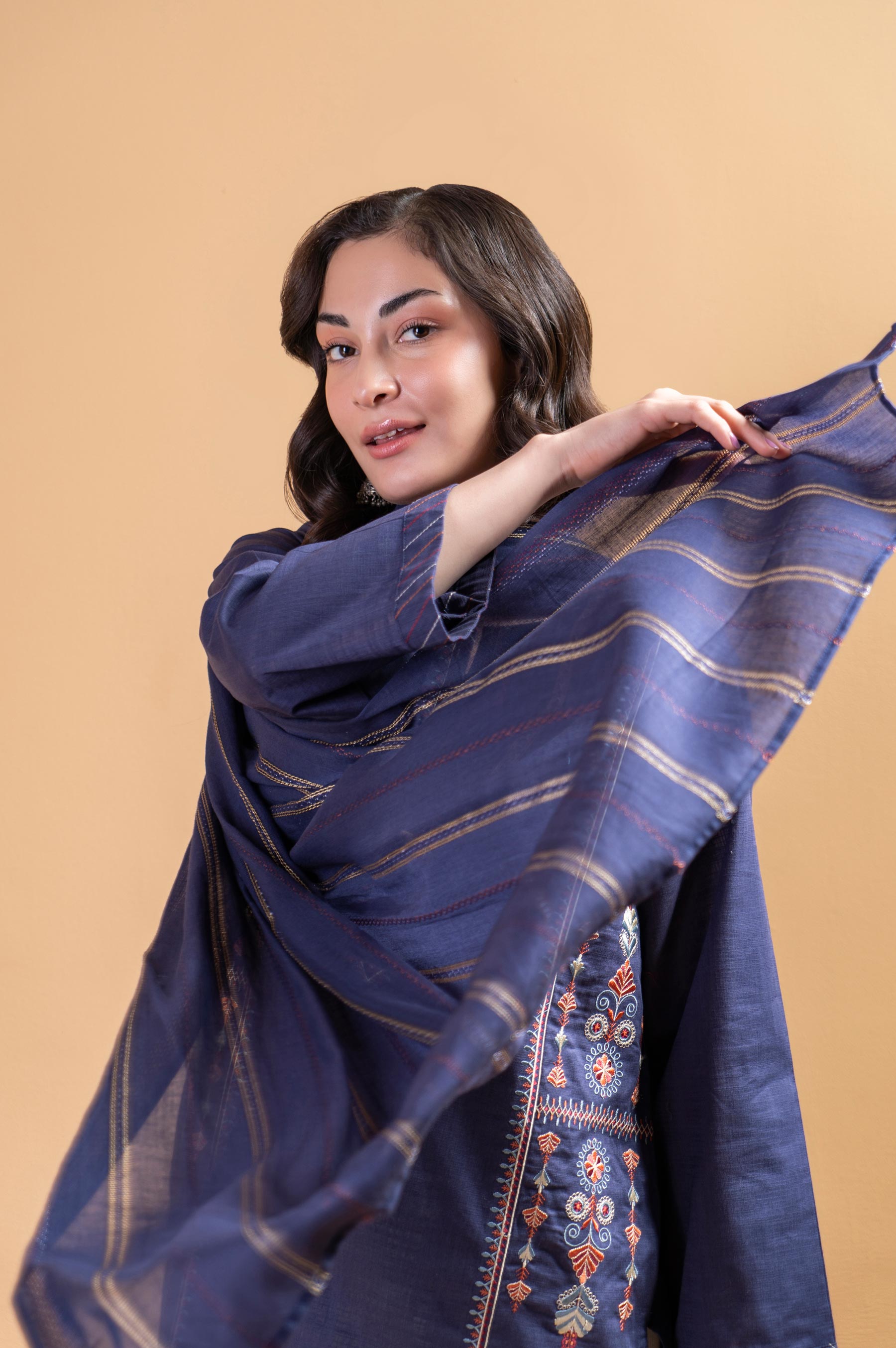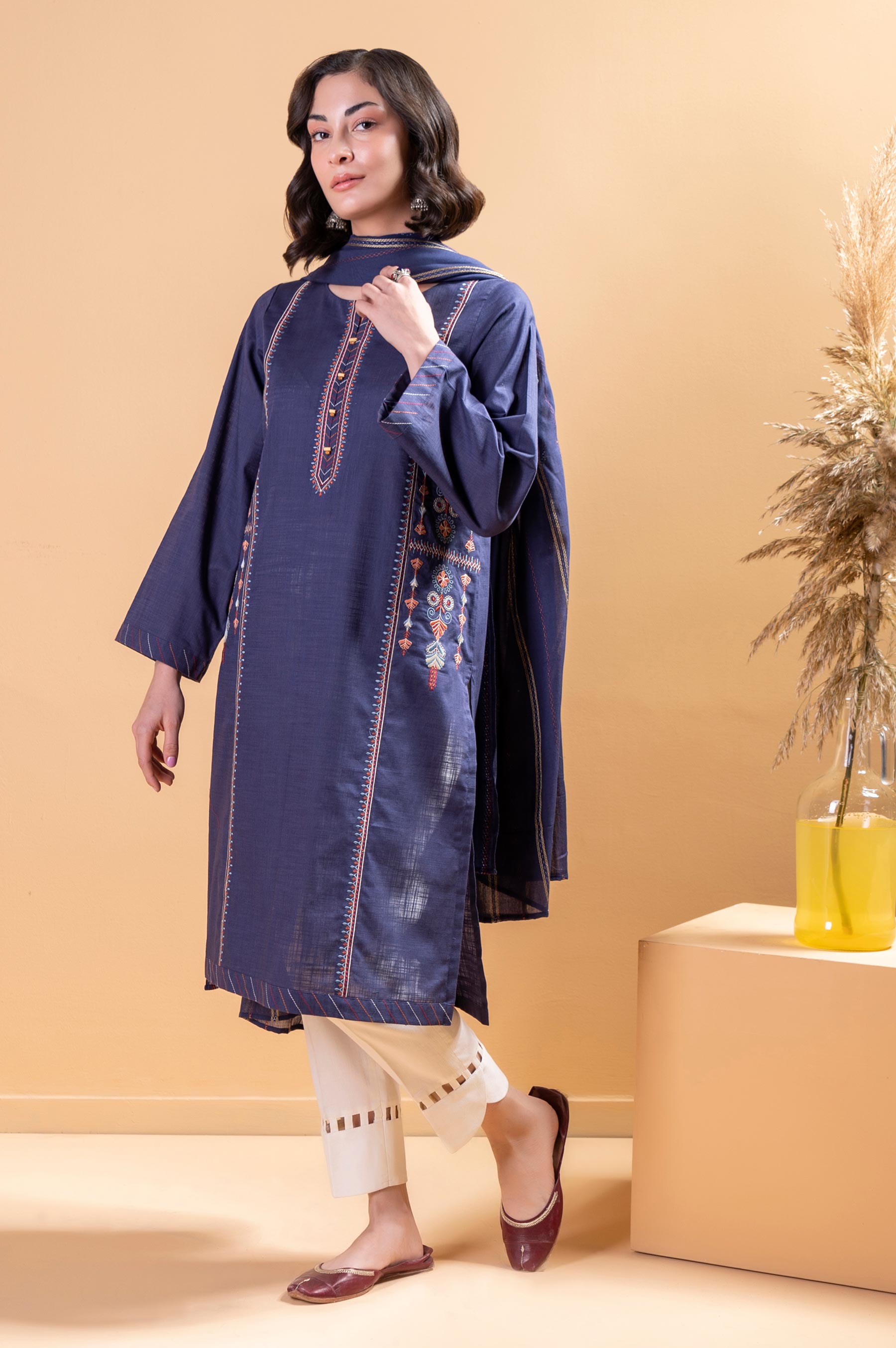 Stitched 2 Piece Embroidered Cotton Slub Shirt With Dupatta