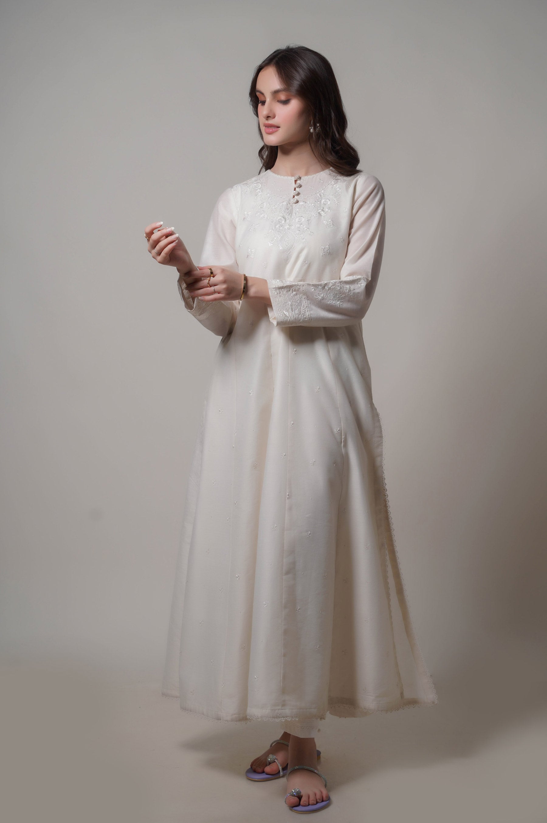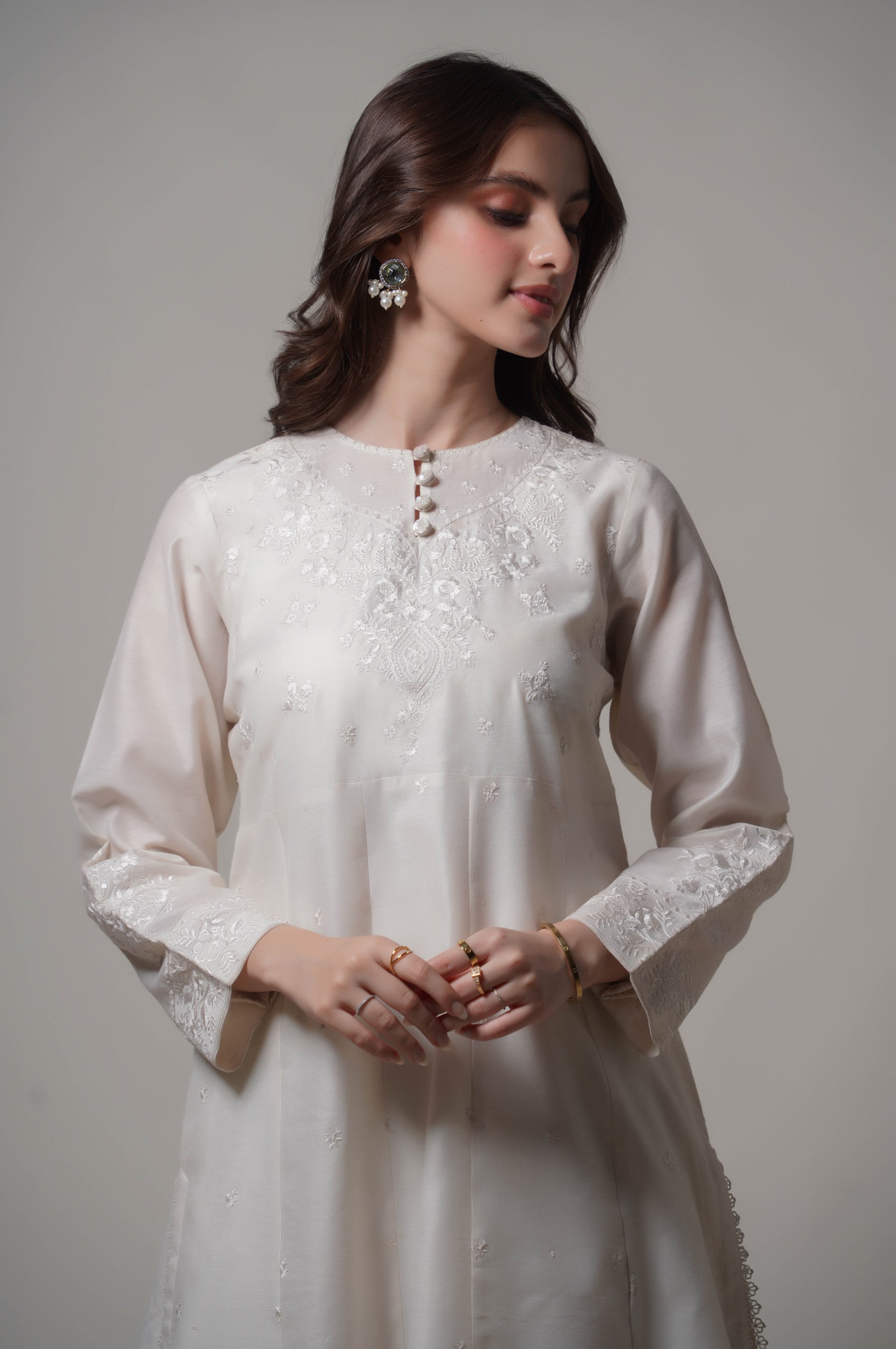 Straight fitted Embroidered Full length Sleeves