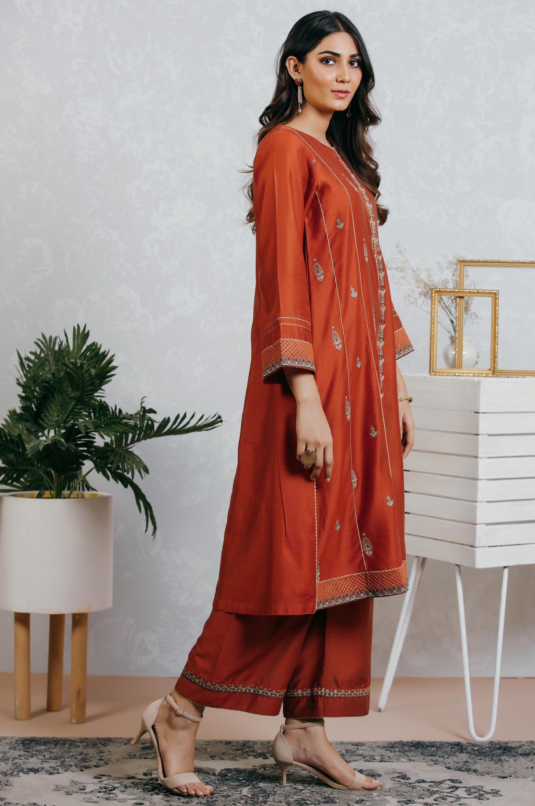 Stitched 2 Piece Cotton Net Embroidered Suit