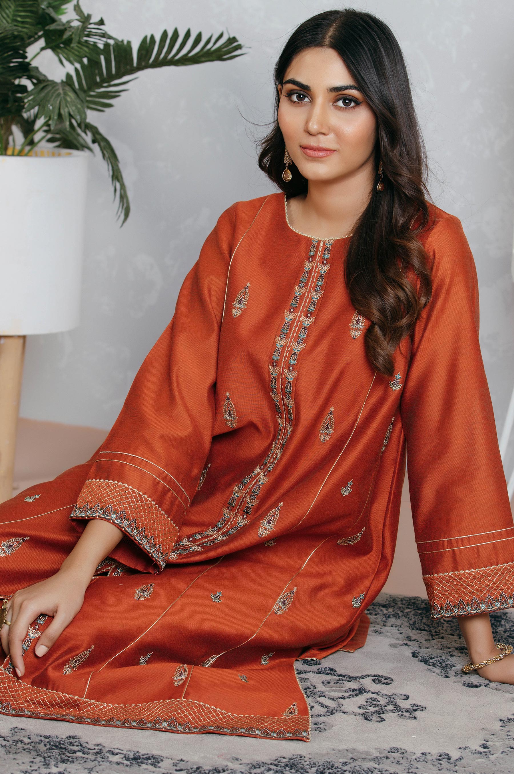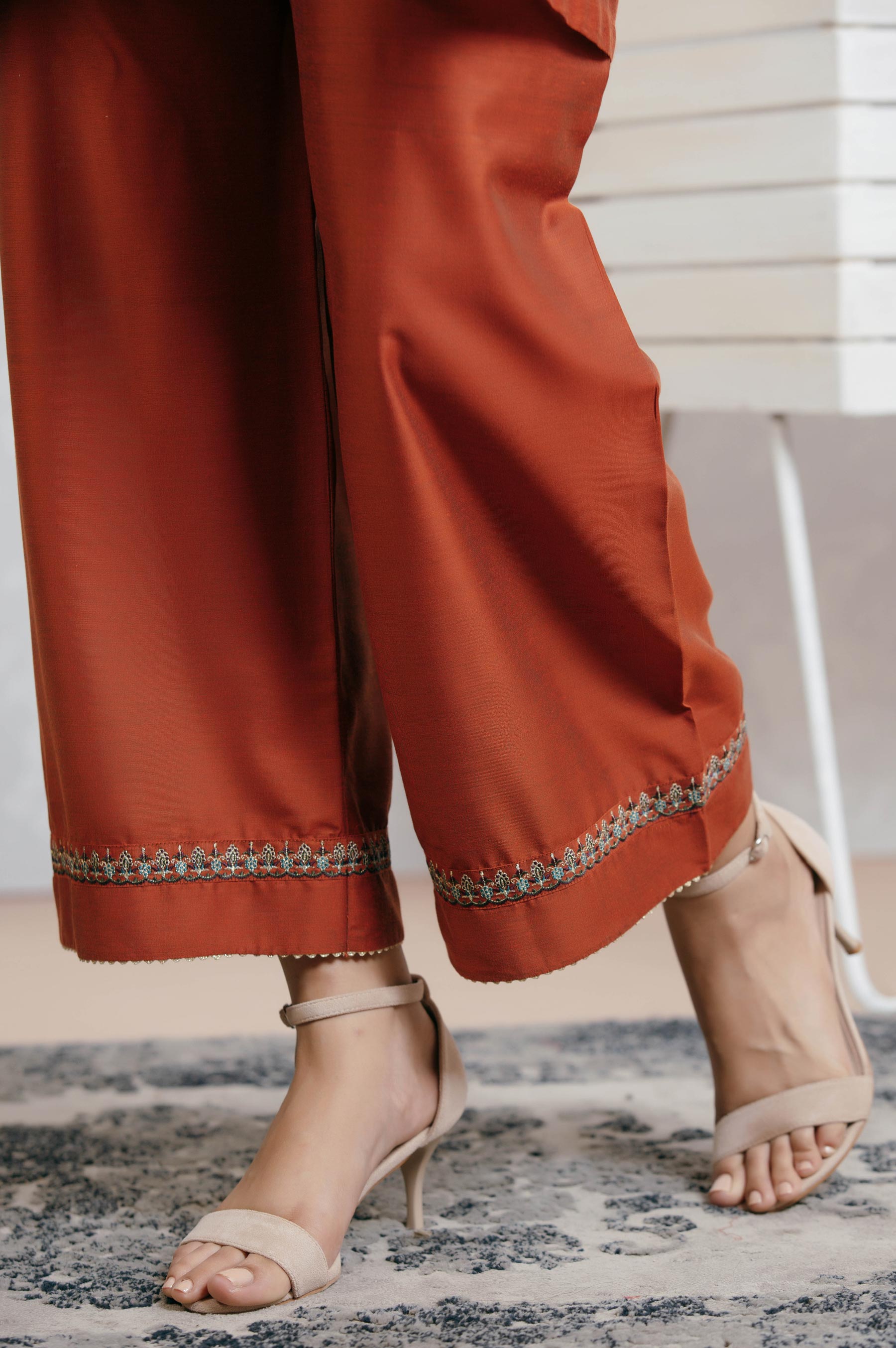 Elevate your wardrobe with this beautiful front open shirt, hitghlighted with intricate embroidery. Paired with matching embroidered pant well suited for upcoming dholak parties.