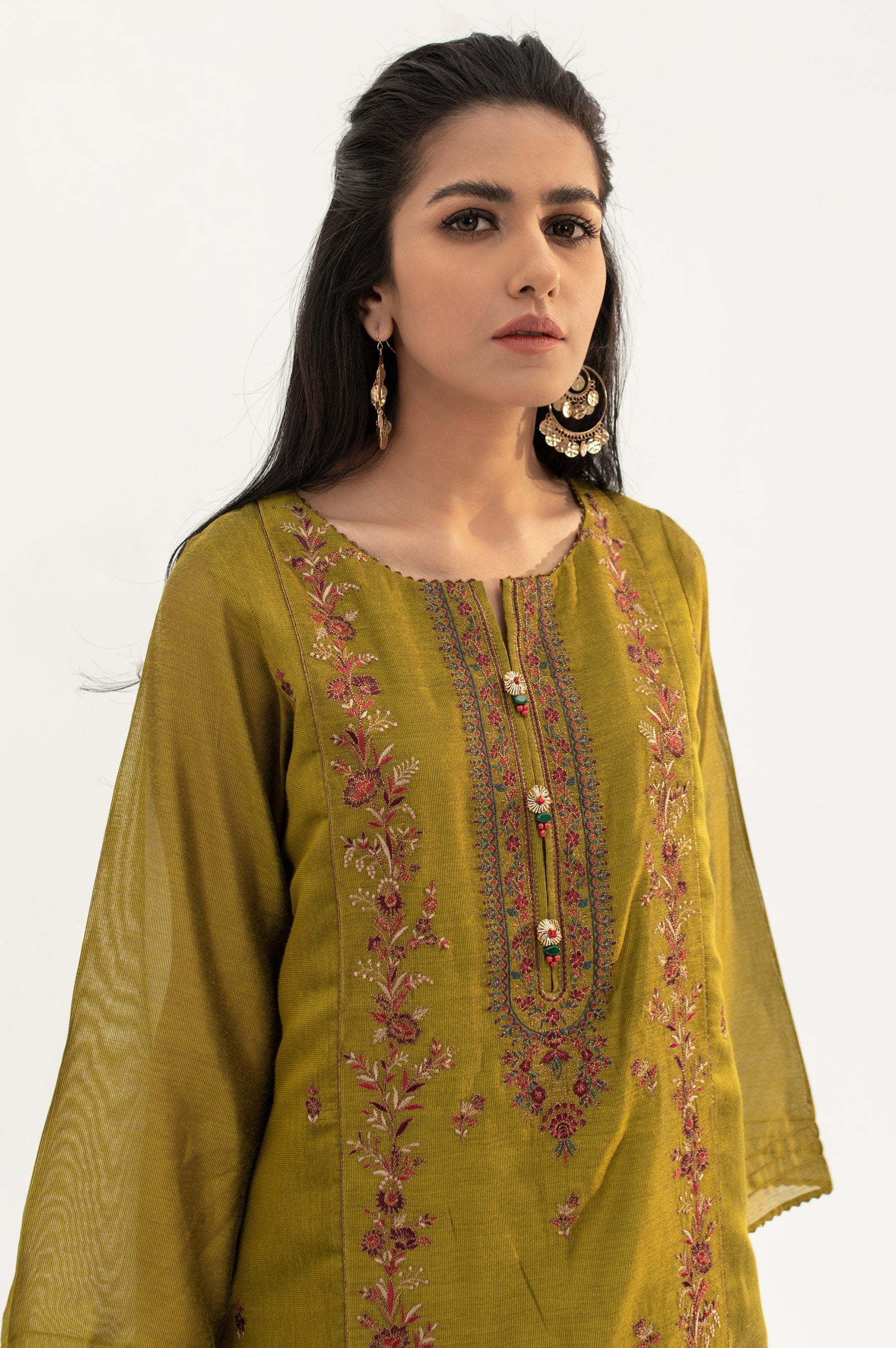 Stitched 2 Piece Cotton Net Embroidered Suit