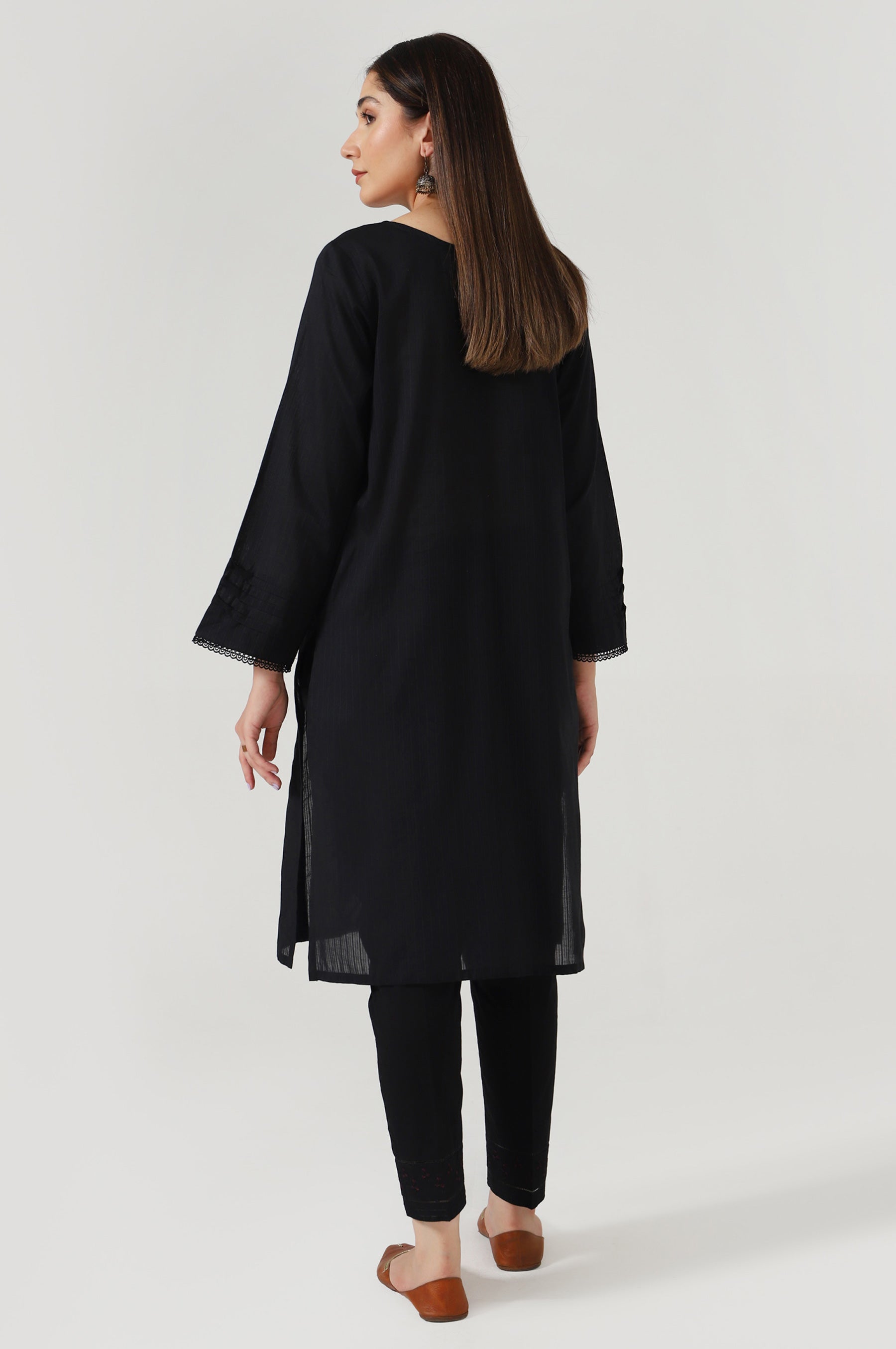 This flattering shirt is an attractive outfit adorned with self embroidery with a mint of plum color is comfortable,stylish and statement worthy.This enchanting outfit comes with a same color embroidered pants that leave a remarkable impression.