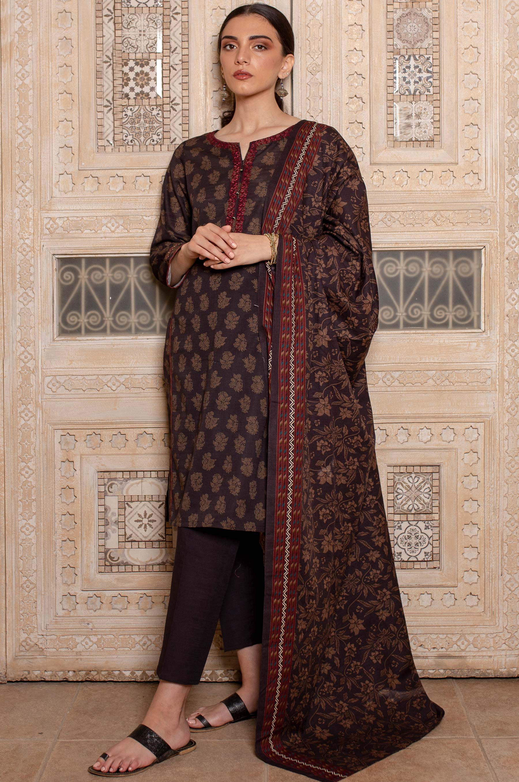 Printed Khaddar Shirt with Embroidered Neckline, Printed Khaddar Dupatta, Beads, Sequins & Dori for Embellishment,