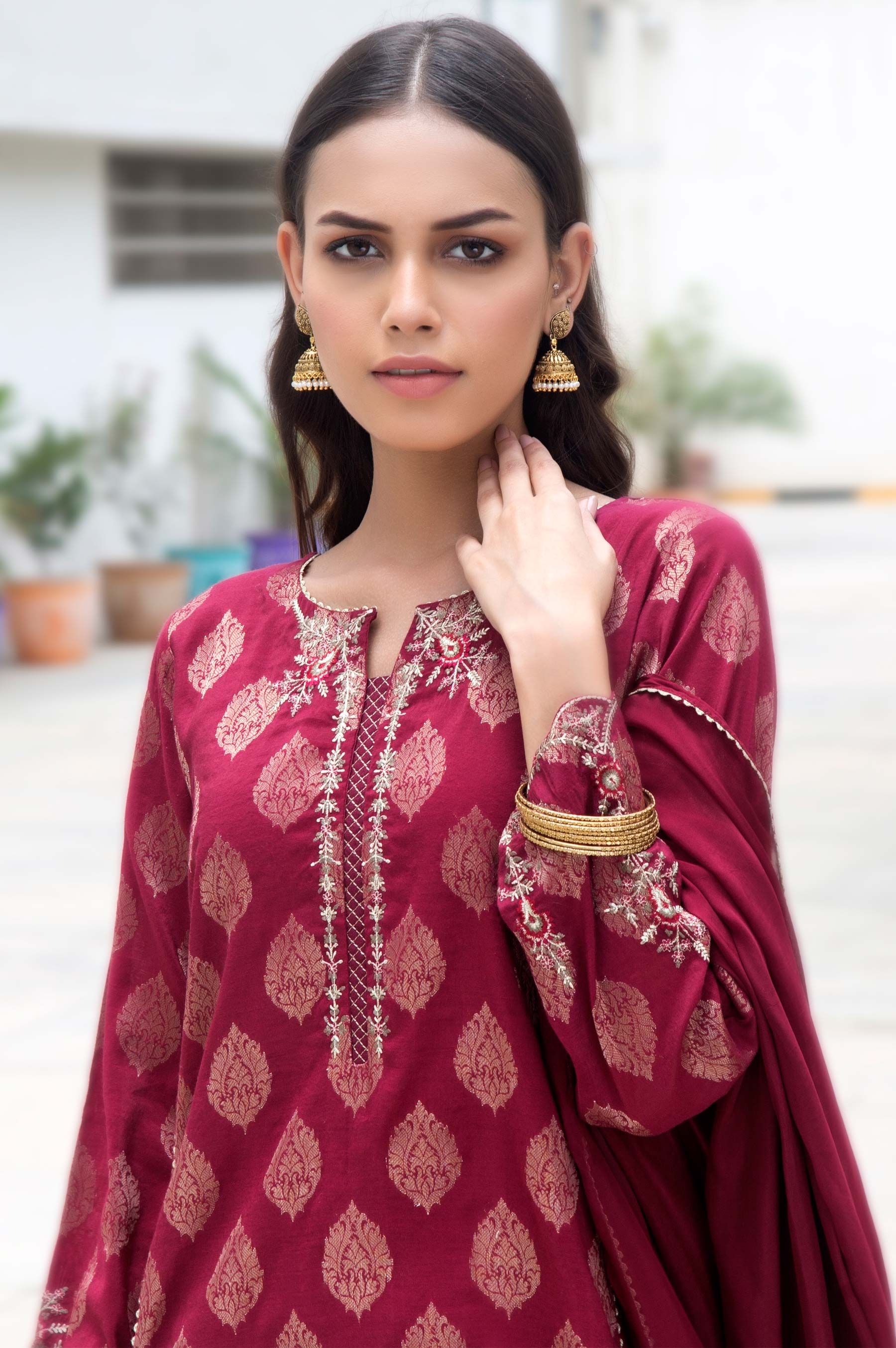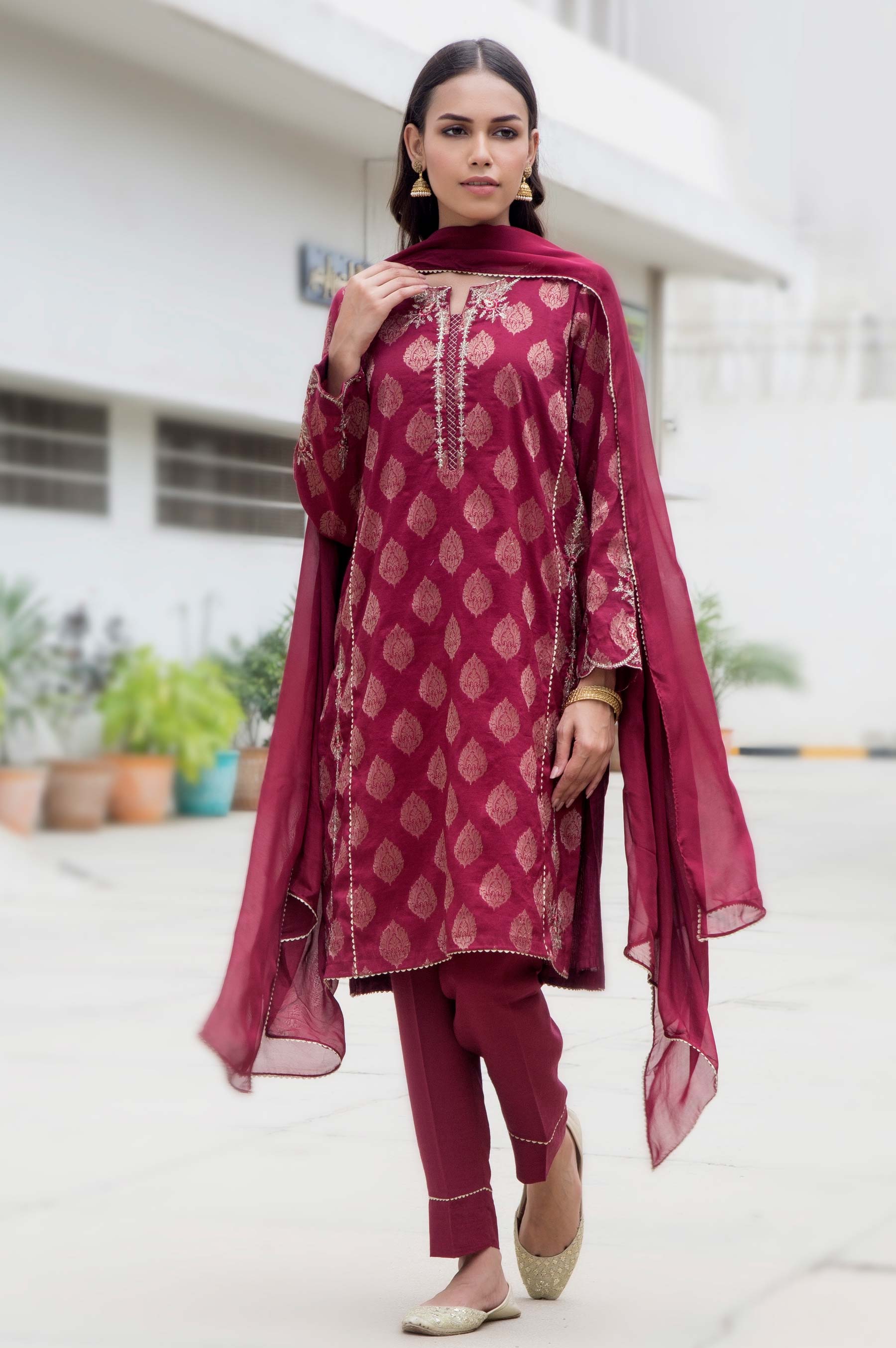 Jacquard Embroidered Shirt, Silk Dupatta