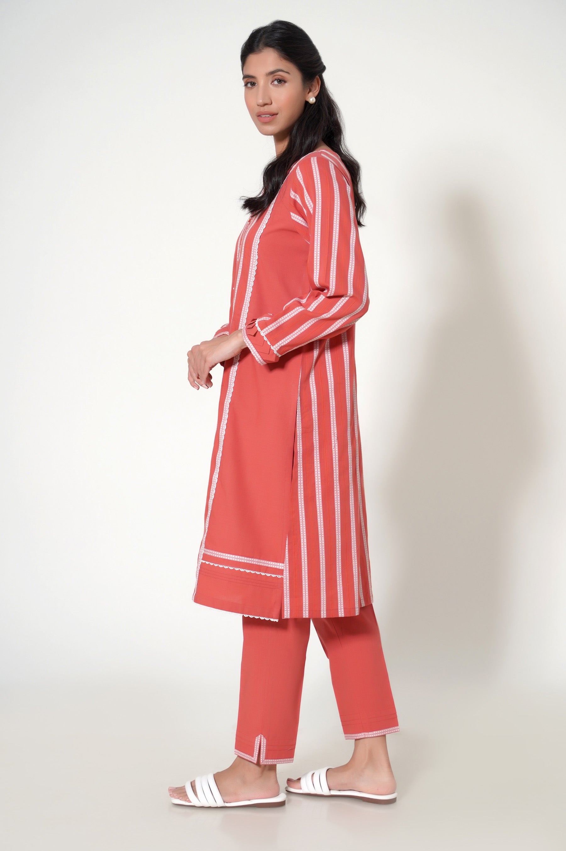 Slay your look at any gathering or event with this rust jacquard inspired by tarkashi motif. All adorned with embellished placket with solid side panel, ended