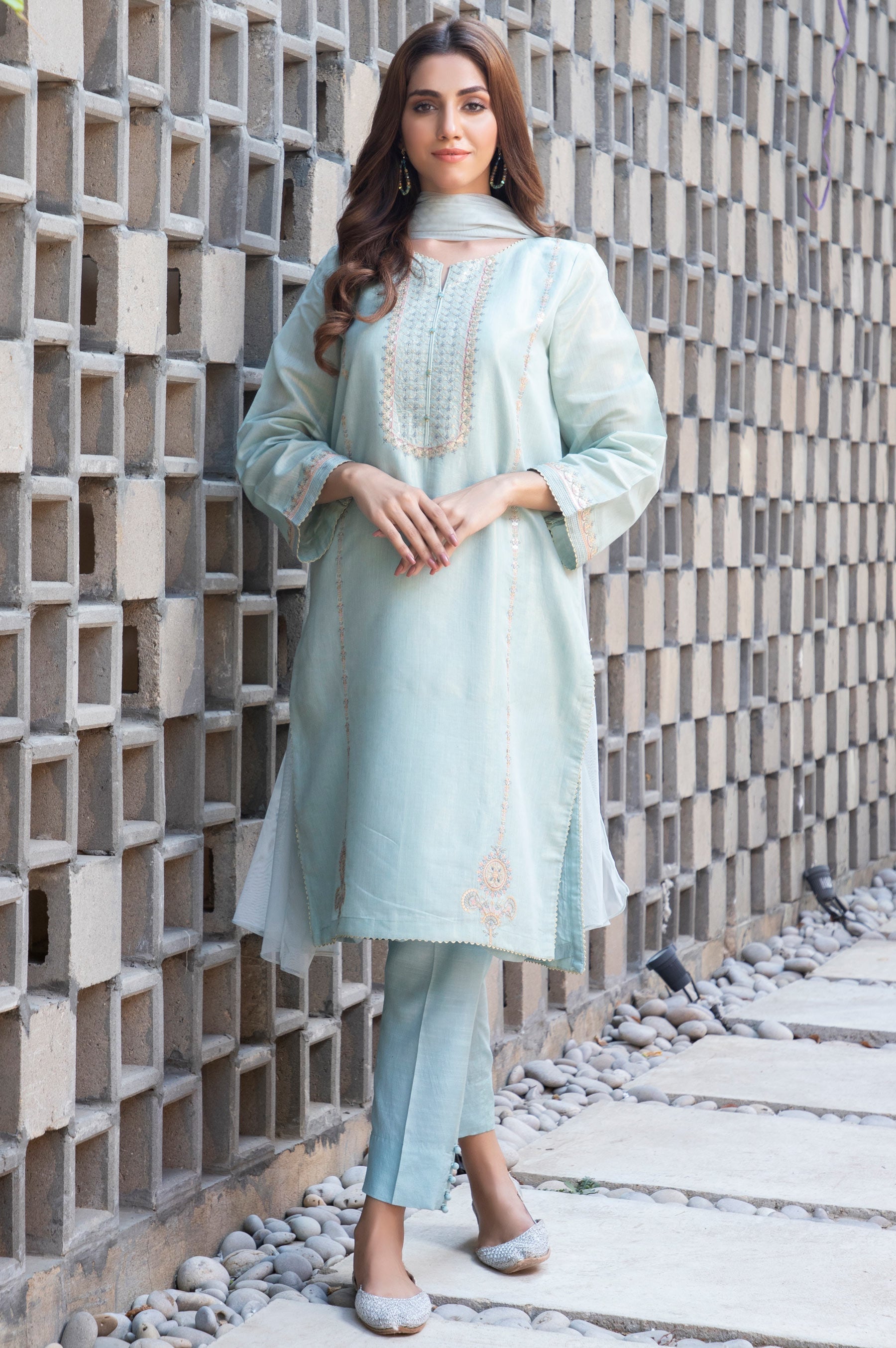 Stitched 2 Piece Mysuri Net Embroidered Suit