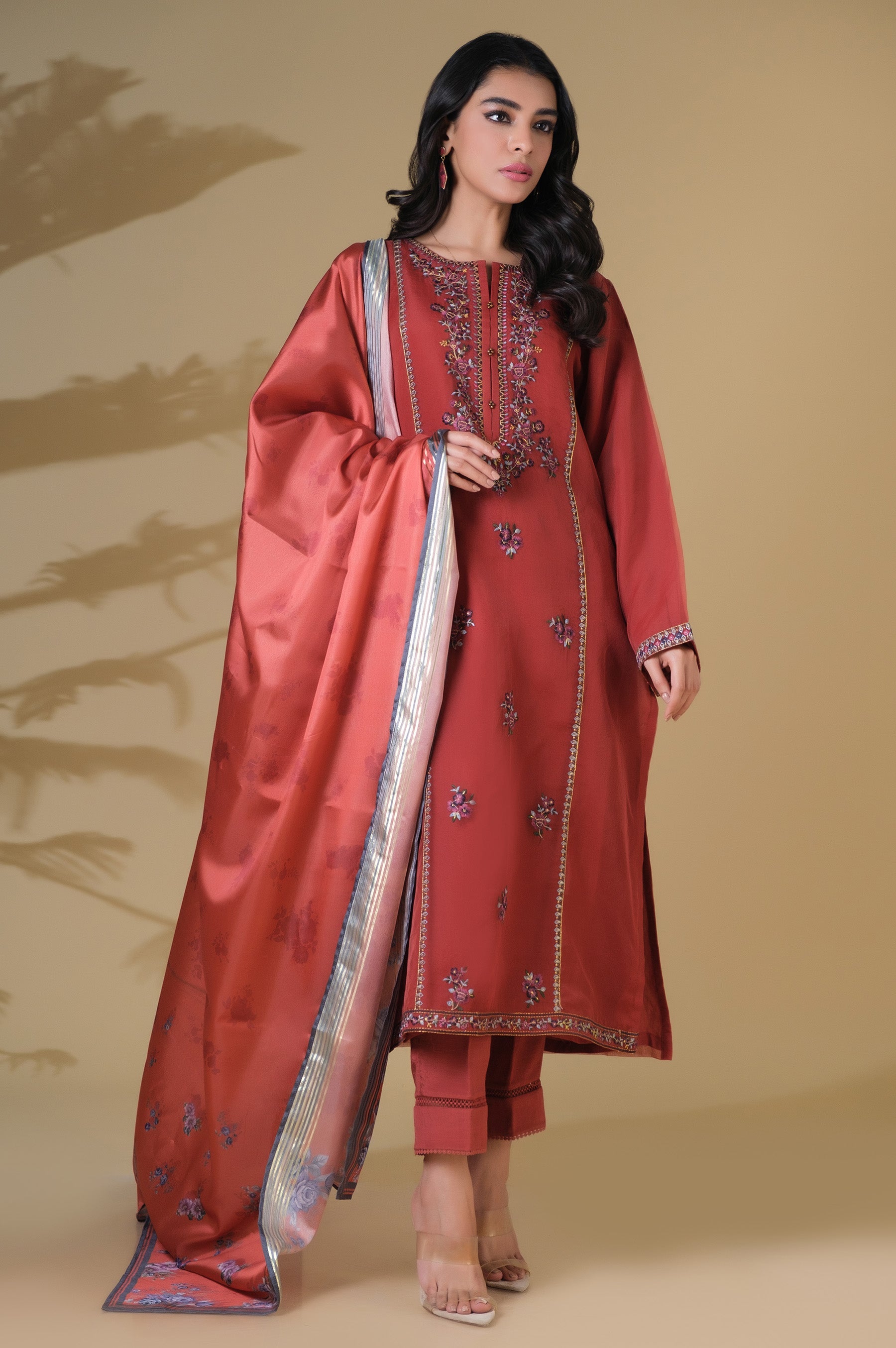 Showcase your grace and style in our gorgeous 2-piece organza in carrot red, inspired