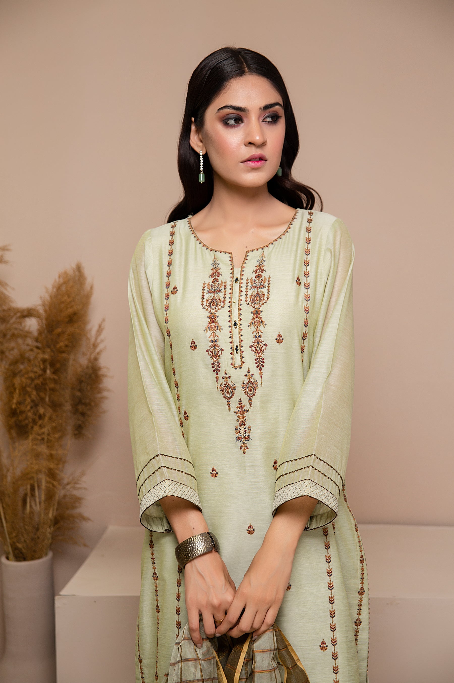 Stitched 2 Piece Paper Silk Embroidered Shirt with Organza Dupatta