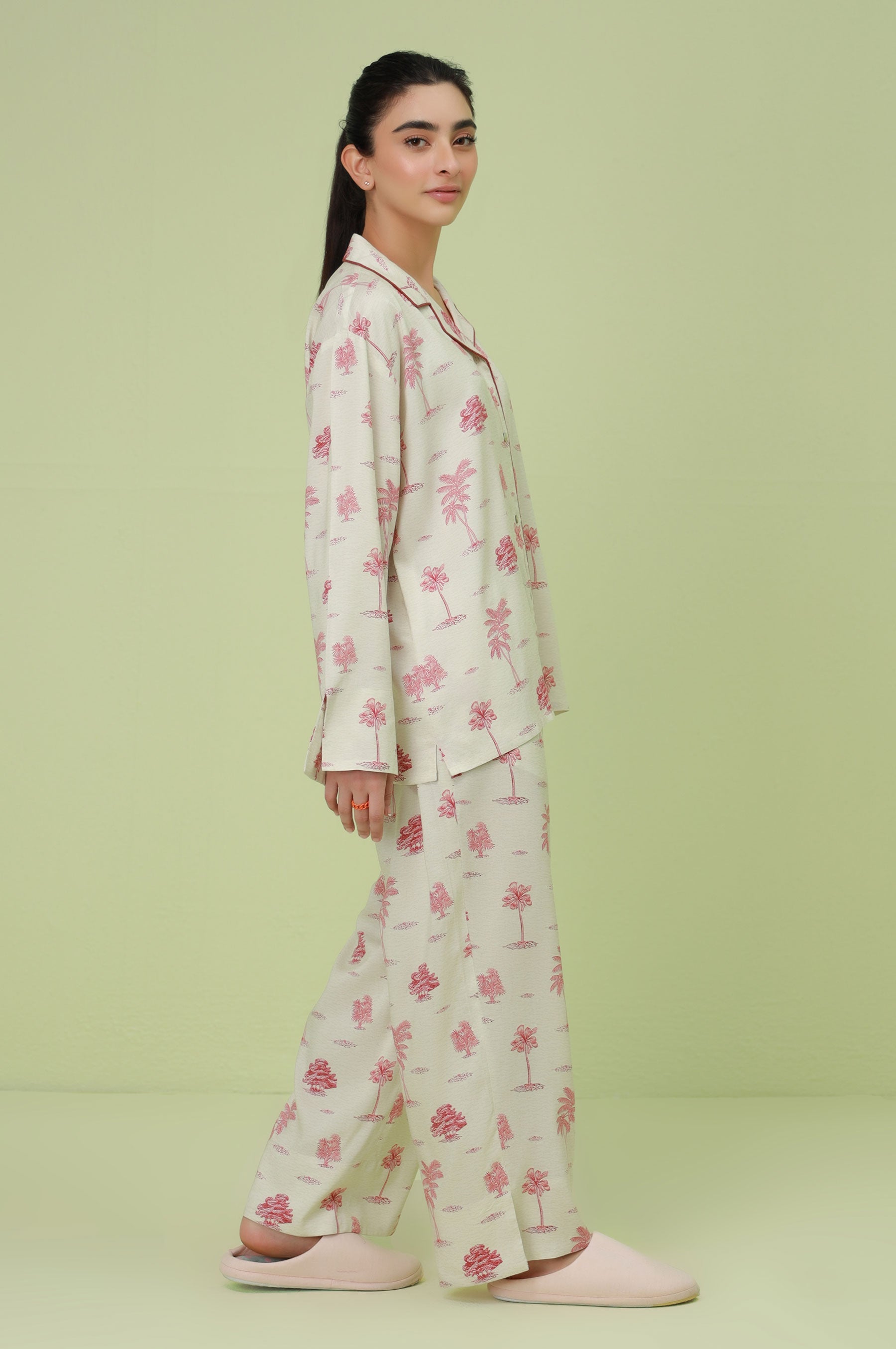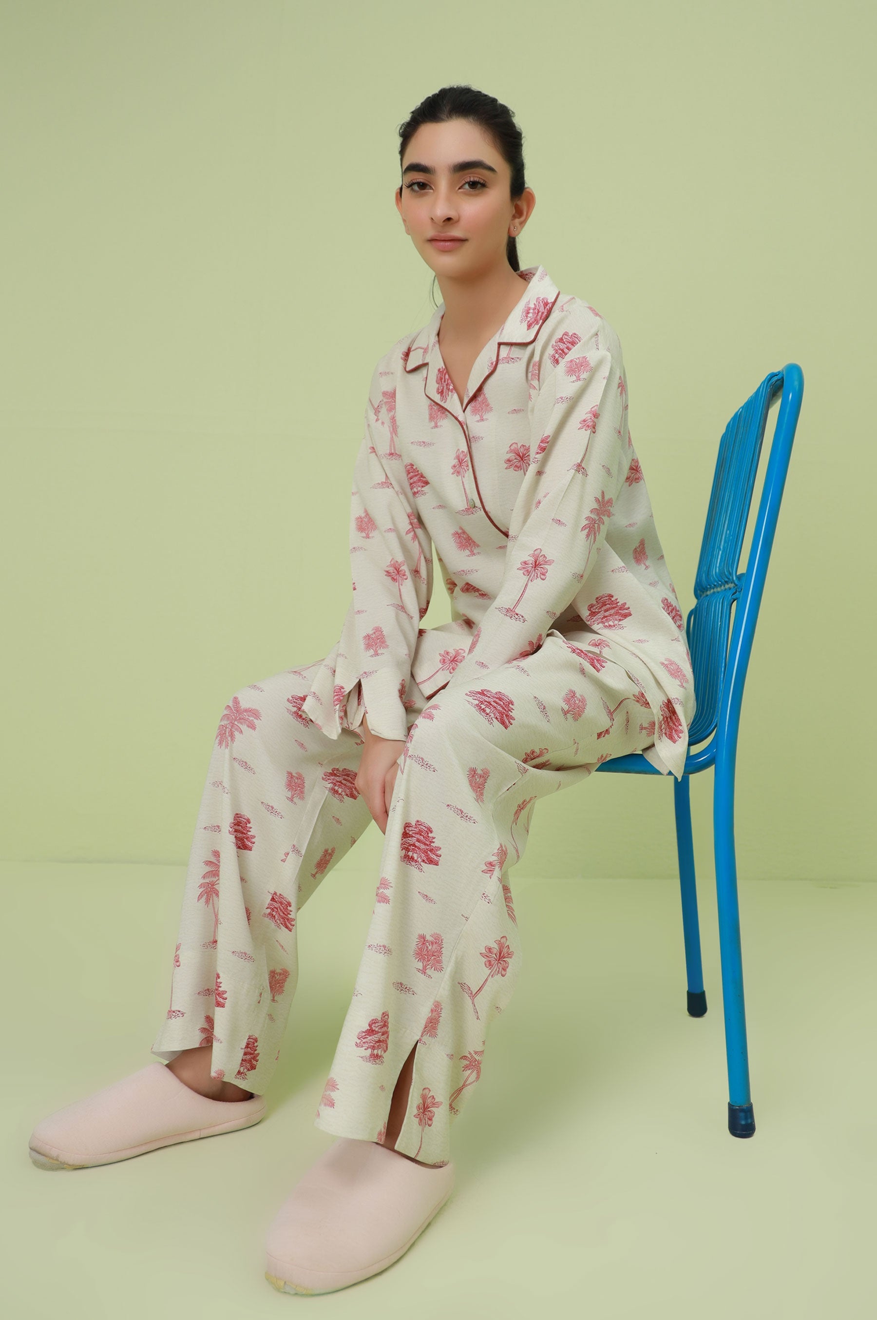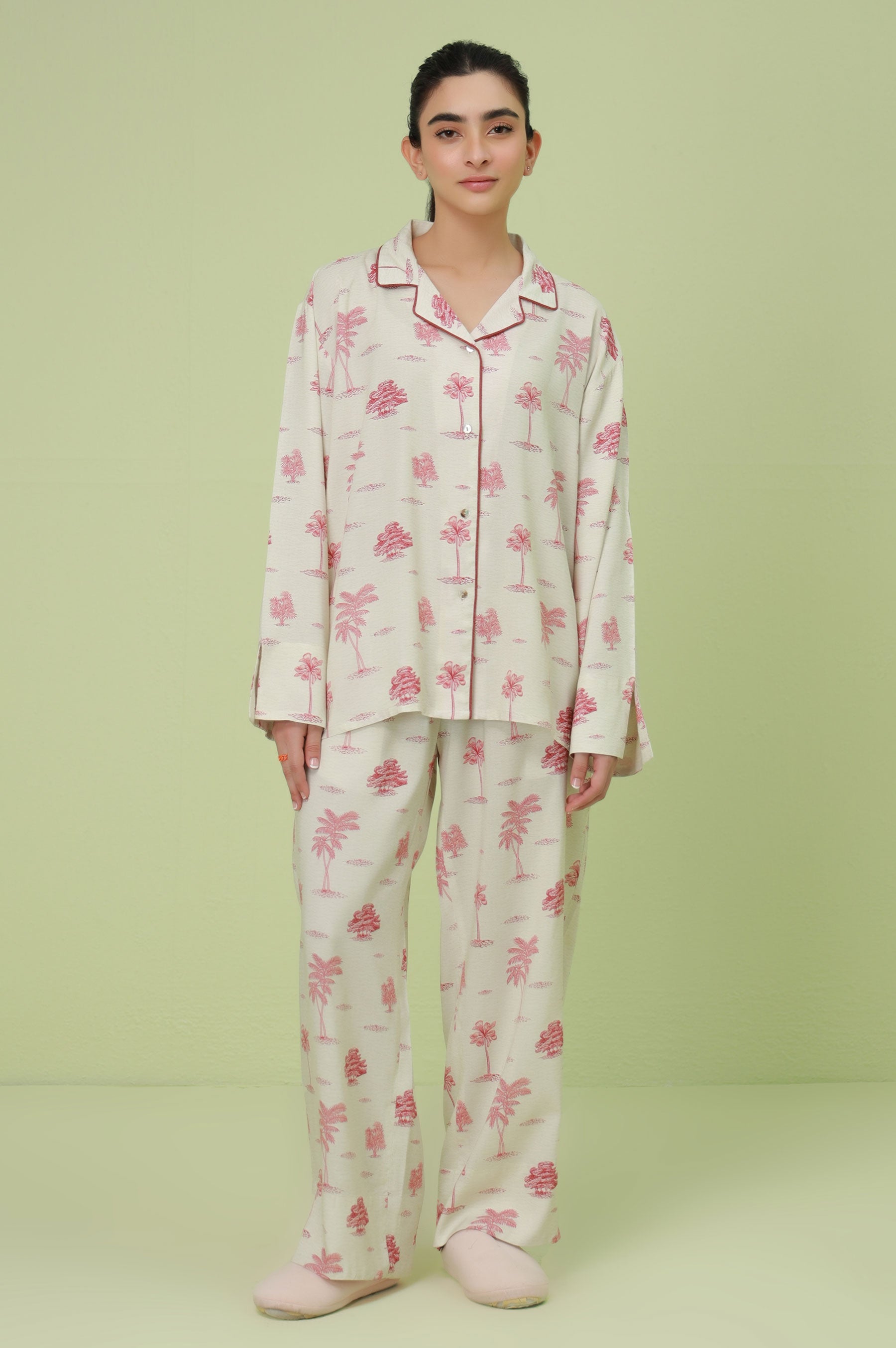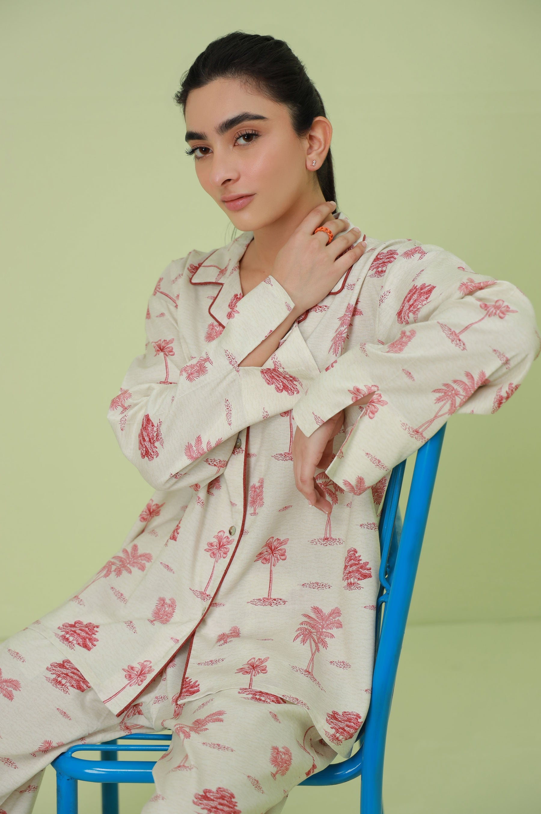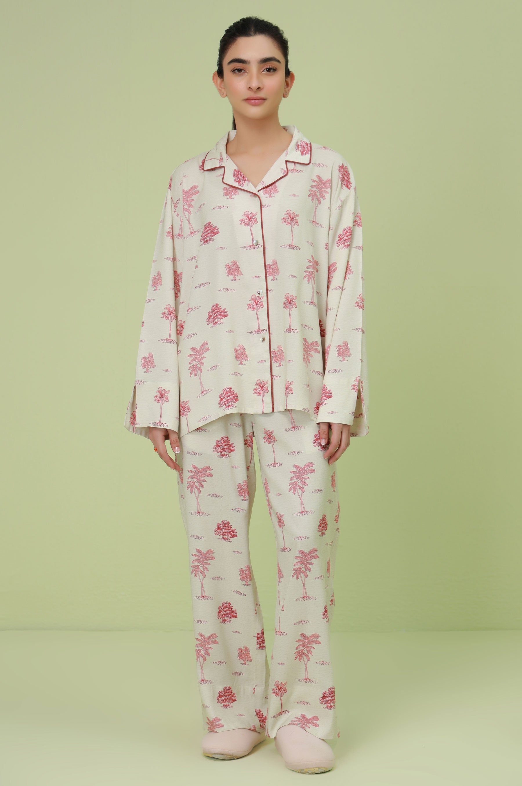 This amazing 2-piece red woven pajama set has been carefully designed for maximum comfort, using only the softest and most breathable fabrics. The top features a stylish collar neck, convenient button-through opening, and cozy long sleeves, while the bottom is made from comfortable linen viscose fabric.